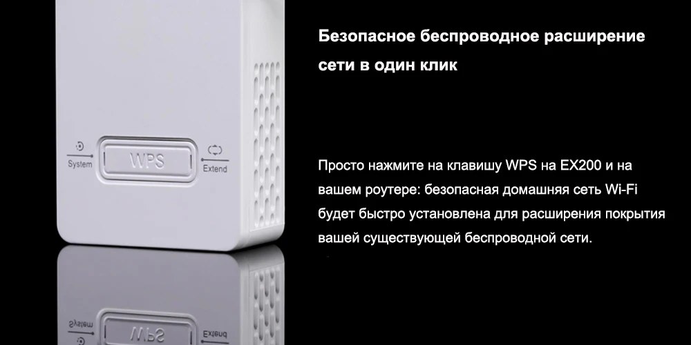 EX200 - это беспроводной рацион, 2.4гц, 2.4гц, 2.4ГГц, 2.4ГГц, 2.4гггц, 2.4гггц, беспроводной доступ в Интернет Нажав кнопку WPS на EX200 и маршрутизаторе в течение двух минут, сеть Wi-Fi может быть фотографией расширена быстро и легко. Благодаря конструкции с адаптером к стандартному стандарту, дом 3100 антеннам и беспроводной связи 300 Мбит/с, EX200 мкм удовлетворить потребности пользователей в мобильном оборудовании