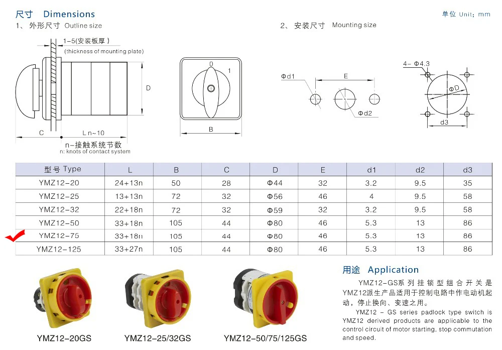Высокий ток 75A Cam Переключатель серебряные контакты 0-3 положения 3 полюса уровня поворотный переключатель 12 терминалов YMZ12-75/3