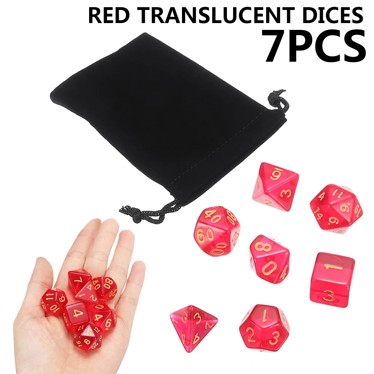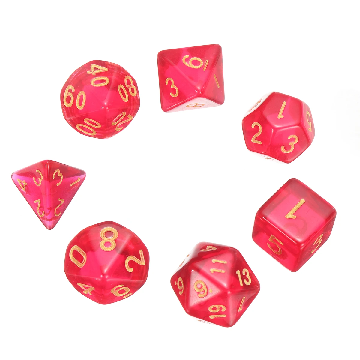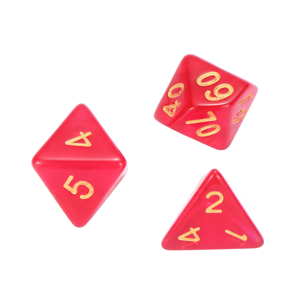 Каждый цвет поставляется с 7 различными игральными костями: 4, 6, 8, 10, 12, 20 сторонних игральных костей и процент (%) игральных костей.
