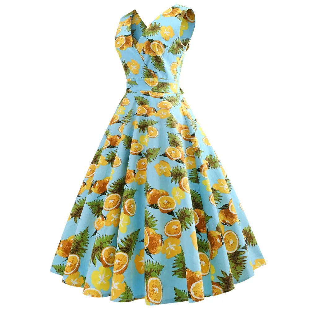 * Винтажный v-образный вырез с лимонным принтом плюс Европейский королевский стиль придает вам элегантный стиль в стиле ретро; Облегающий и расклешенный силуэт подчеркивает Вашу фигуру
