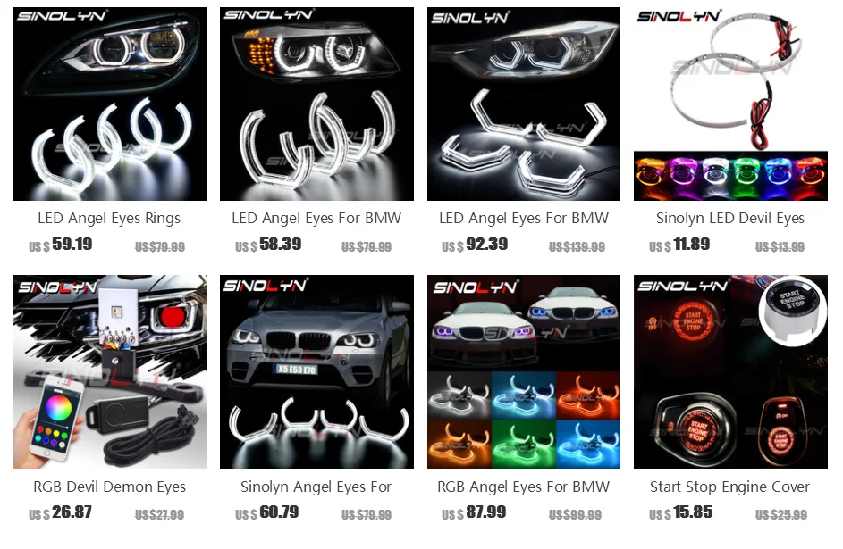 Это светодиодный кольцевой светильник Sinolyn для BMW, который практически взорвал автомобильный мир! Эти яркие светодиодные кольца halo в знаменитом стиле дадут вашим автомобильным фарам супер свежий и уникальный вид, не заплатив премиальную цену. Эффектные кольца с ангельскими глазами очень популярны.