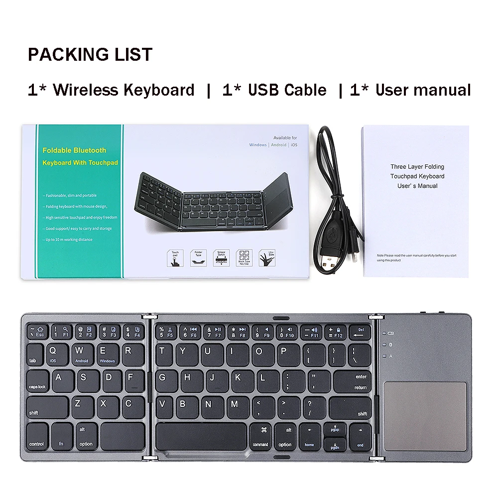 [Основные характеристики] -Легкое и быстрое подключение Bluetooth успешно и автоматически -Компактный складной и легкий дизайн -Изготовлен с помощью многофункциональных клавиш, мощный и полезный (сенсорная панель и мини-клавиатура) -Высококачественный ключ из АБС-пластика с поднятым дизайном обеспечивает комфорт и быструю печать -Совместим с Windows / iOS / Android Примечание: 1. При использовании ios системы воспроизведения на клавиатуре Сенсорная панель не работает. Но Android / Windows могут нормально. 2. Сенсорная панель с функцией «два пальца стрейч-зум» не работает в системе Android. Работает только в системе Windows. [Характеристики] -Наименование товара: VONTAR 033 -Версия Bluetooth: 3,0 -Цвет: черный -Материал: металл + АБС-пластик -Тип интерфейса и разъема: Bluetooth -Тип питания: литий-ионный аккумулятор -Емкость литий-ионного аккумулятора: 140 мАч -Рабочее напряжение: 3,7 в -Ток в режиме ожидания: 0,25 мА -Рабочее напряжение: менее 3 мА -Используйте сенсорную панель с рабочим током: менее 8,63 мА -Рабочее расстояние: 3 м -Скорость отклика: нет -Материал кнопки: АБС-пластик -Номер Anti-ghosting: нет -Расположение клавиатуры: 64 клавиши (включая сенсорную панель) Система поддержки: -Windows 2000.XP. Vista.Windows CE.Windows 7 Android -Для системы IOS -Система Android [Упаковки] -1 беспроводная Bluetooth-клавиатура -1 x USB-кабель -1 x Руководство пользователя [Изображения]