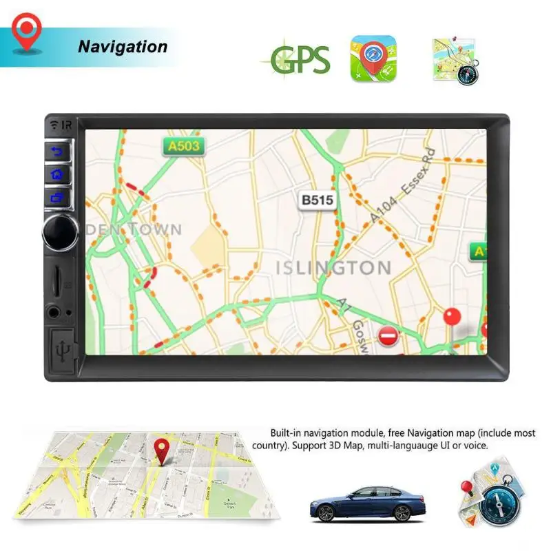 1. CPU 1.3G 2. Memory+ no analog TV function, no DVD player, no recorder function 3. Android 7.1 OS 4. 1G DDR3, 16G iNAND 5. Support HD screen (1028 * 600) 6. Support capacitive touch screen, support multi-touch 7. Built-in Bluetooth, phonebook and BT music 8. Built-in WiFi, support WiFi hotspot 9. Support phonelink function 10. Built-in GPS/ Compass dual-mode navigation module 11. Support 1-way SD card, 2-way USB interface 12. Built-in FM Radio 13. Multi-format audio and video decoding, support 1080P full-format 14. Support rear view camera input (rear view camera included) 15. Support internal and external GPS map 16. Supports Internet APP download, install, uninstall 17. OSD languages: Indonesia, Czech, German, English, Spanish, French, Italian, Polish, Portuguese, Romanian, Finnish, Vietnamese, Turkish, Russian, Korean, Japanese, Arabic, etc. 18. 7 color light function Specifications: Chip Manufacturer: MT8127 Battery type: with remote control (CR2025) Interface: AV-Out, BT, TF, USB2.0 Screen size: 7 inches Resolution: 1024*600 Maximum external capacity: 32G (not included) Special function: support TF card, USB, built-in GPS, WiFi Supported video format: AVI/MP4/RMVB/RM/MOV/3GP Memory card read speed: CLASS10 Touch screen: capacitive touch screen Screen ratio: 16:9 OSD languages: Indonesia, Czech, German, English, Spanish, French, Italian, Polish, Portuguese, Romanian, Finnish, Vietnamese, Turkish, Russian, Korean, Japanese, Arabic, etc. Operating System: Android 7.1.1 CPU and frequency: MTK MT8127 Quad Core, 1.3GHz Memory: 1GB Flash memory: 16GB Operating voltage range: DC +10.8-14.4V Operating temperature range: -20~ +70°C Supported map: Navitel, Tomtom, Google map online etc Bluetooth version: Bluetooth-compatible V4.1+EDR, compatible with BT V1.2, 2.0 Phonebook: supported Microphone: built-in Product size: 178 x 100 x 65mm/7.01 x 3.94 x 2.56"