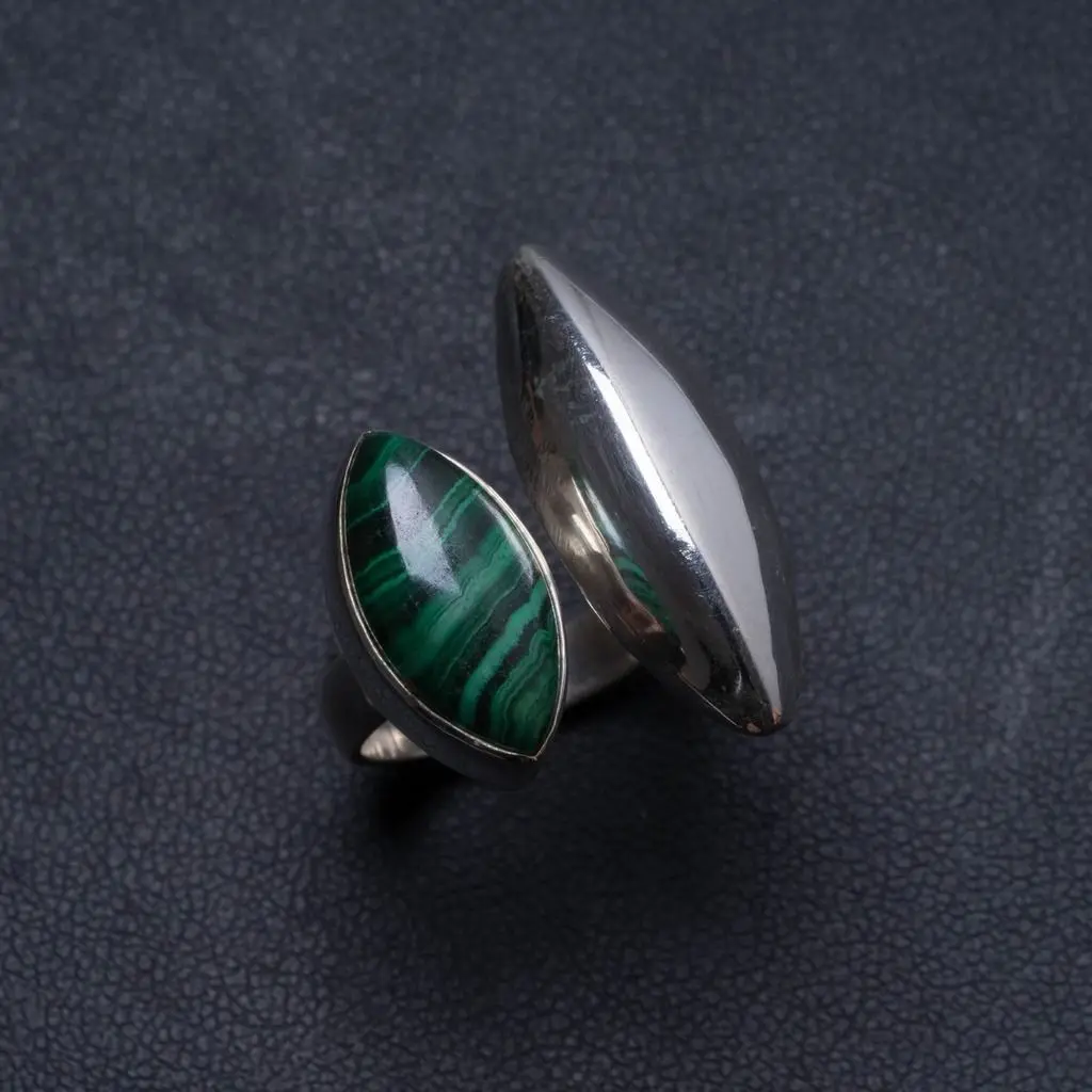 Натуральное малахитовое регулируемое уникальное 925 пробы Серебряное кольцо ручной работы, размер США 5,75; X2215