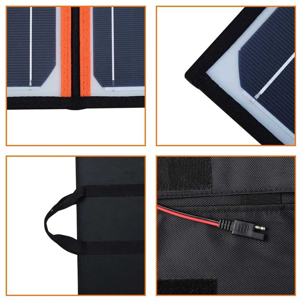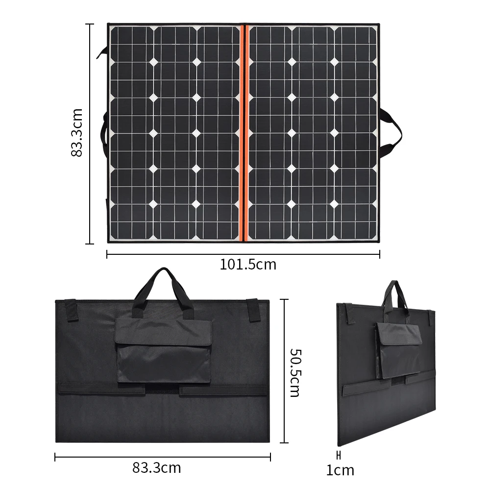 1. Материал: монокристаллический кремниевый элемент; 2. Рабочее напряжение: 18 в Напряжение открытой цепи: 21,6 в 3. Мощность: 120 Вт; 4. Максимальный рабочий ток: 6.66A Ток короткого замыкания: 7.33A 5. Рабочая температура: -20 ℃ ~ + 60 ℃; 6. Размер: складка: 757X505X10mm Разворачиваются: 1015X757X4mm; 7. Вес: 3,38 кг; 8. Карман для строчки ремня с кабелем разъема SAE 0,5 м;