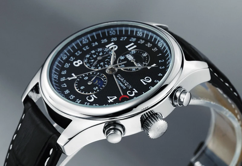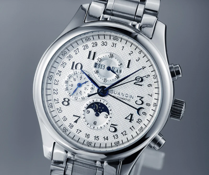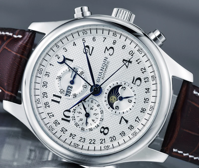 Добро пожаловать в часовой магазин GUANQIN. Меня зовут Ван Си Инь, главный менеджер GUANQIN. Для меня большая честь представить вам эти высококачественные часы-модель № GUANQIN 20022. Он оснащен высококачественным многофункциональным автоматическим механизмом, обновленным сапфировым стеклом (обновленное сапфировое стекло с 2 марта 2020 года), и оснащен дисплеем года, месяцем, отображением недели, отображение даты и фазы Луны, которые вы можете настроить, как вам нравится. Здесь вы можете посмотреть фотографии часов и просмотреть видео, чтобы узнать больше об этой модели. Мы надеемся, это поможет вам сделать правильный выбор. Хорошего дня.