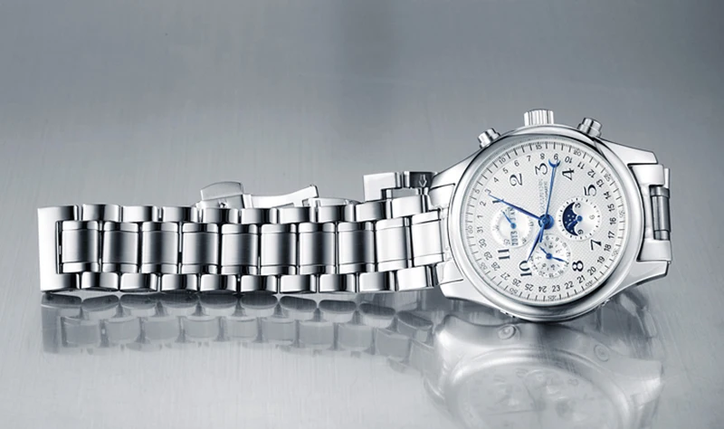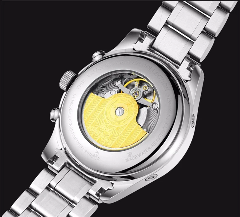 1. Все мини-циферблаты часов работают исправно. 2. Чтобы обеспечить нормальную работу часов, перед первым использованием заведите их на 30 полных оборотов по часовой стрелке. 3. Если вы носите часы менее 8 часов или если ваша рука раскачивается меньше чем необходимо, завода будет не достаточно для продолжения работы часов. 4. Отображение дня недели: работа зависит от механического автоподзавода. Значение на циферблате дней недели обновляется в 3 или 4 утра на следующий день. Чтобы настроить циферблат дней недели, следует нажать дважды. (Проверка проводится вручную, у фактического изделия допустима разумная погрешность). -1. Оригинальное изделие; 2. Гарантийная карта; 3. Руководство пользователя; 4. Оригинальная коробка; 5. Ткань для зеркал; 6. Инструмент (штифт)