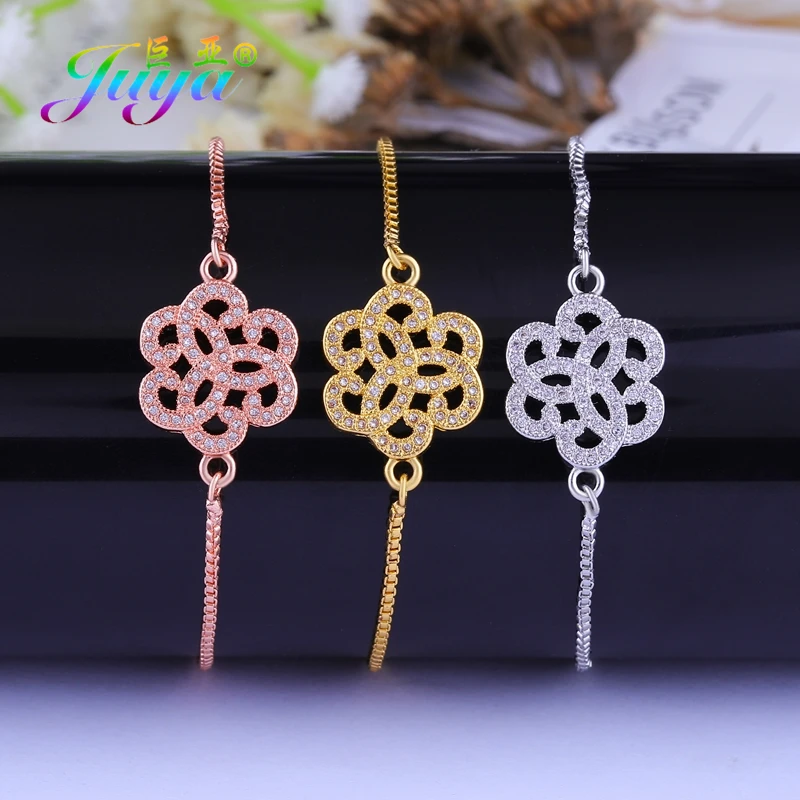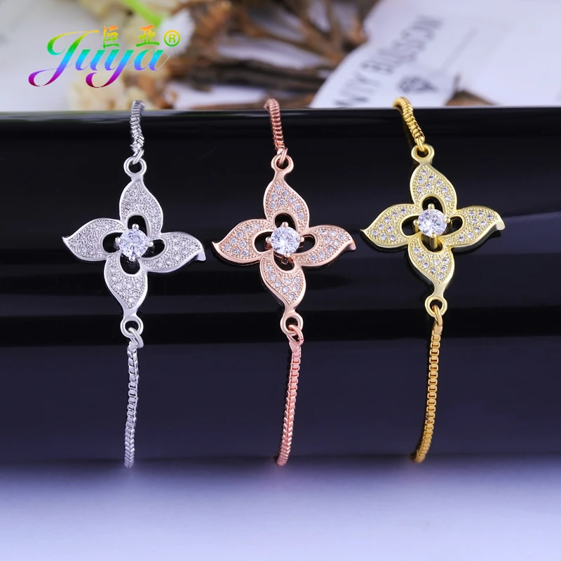 Женские и мужские Регулируемые цепочки Juya, браслеты ручной работы из циркония с микро закрепкой, золотистого/серебристого/розового золота