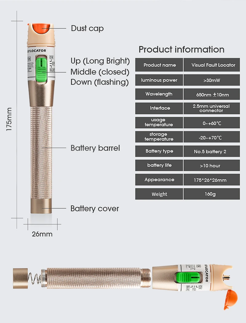 Бесплатная доставка 650нм металлический Визуальный дефектоскоп VFL волоконно-оптический красный источник Тестер Волоконно-Оптического Кабеля