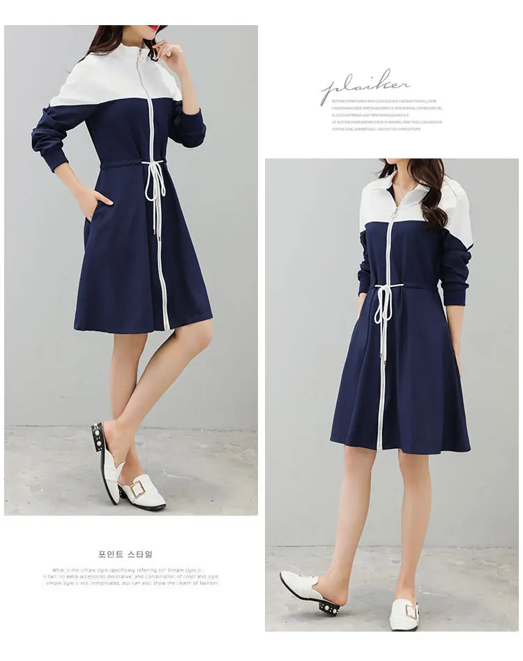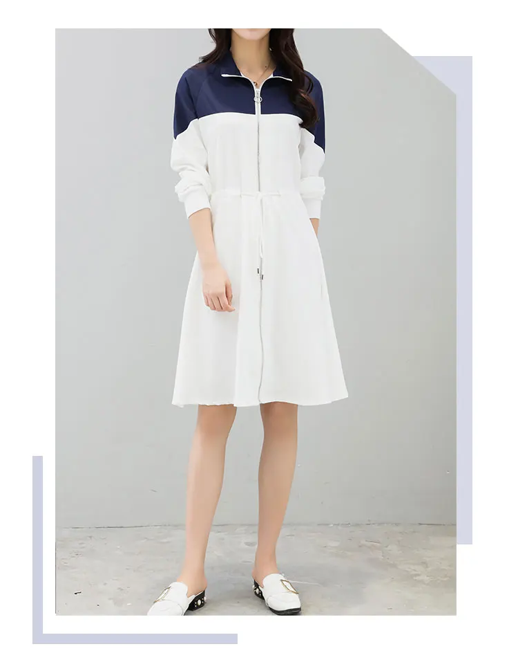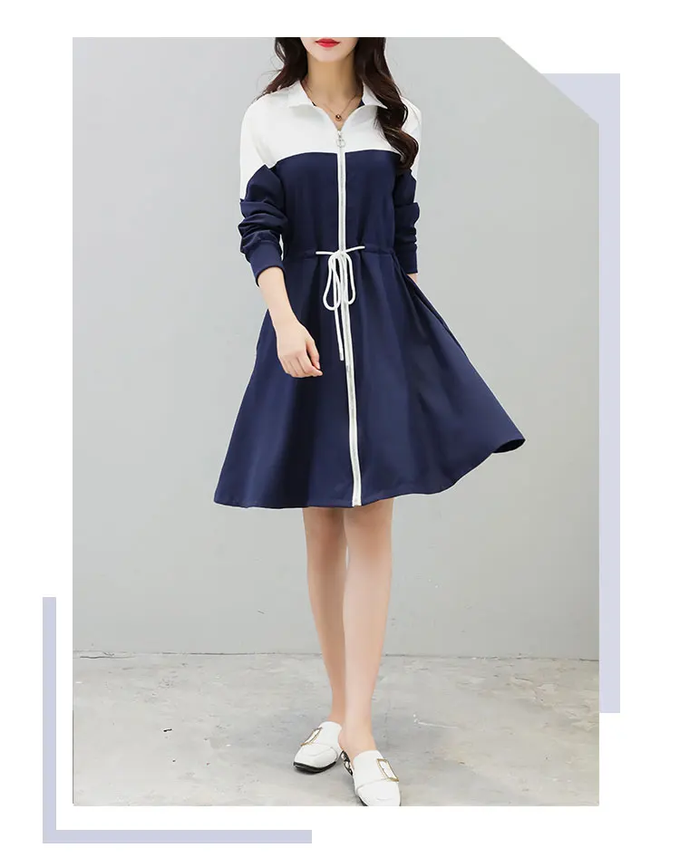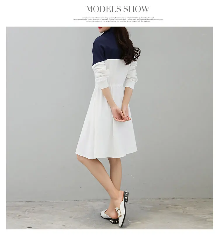 Трапециевидные платья, 2 цвета, Винтажный дизайн, женское платье с длинным рукавом в стиле пэчворк, винтажное женское платье белого и синего цвета, приталенное платье с капюшоном, DW45 <