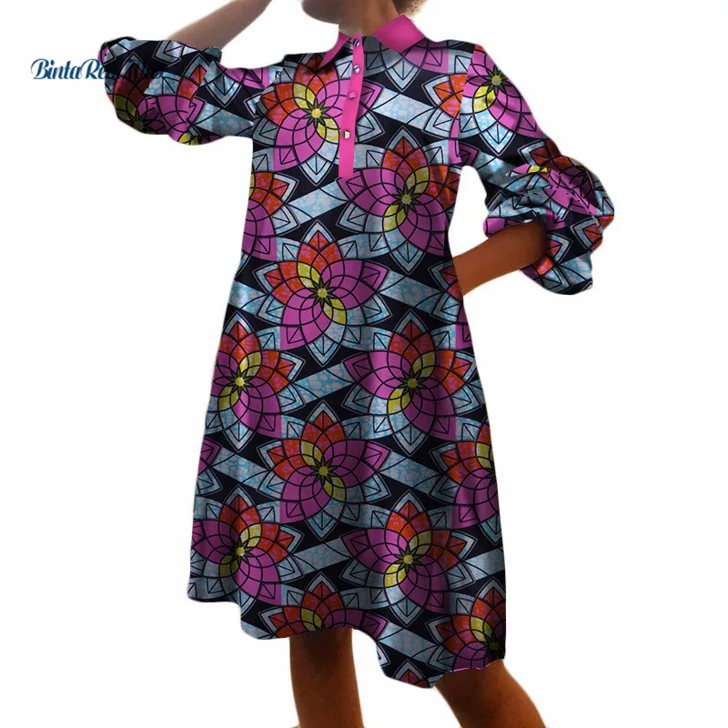 Повседневные платья с принтом в африканском стиле для женщин; Свободные прямые платья-рубашки с отложным воротником; Длинная рубашка; Одежда в африканском стиле; WY3355
