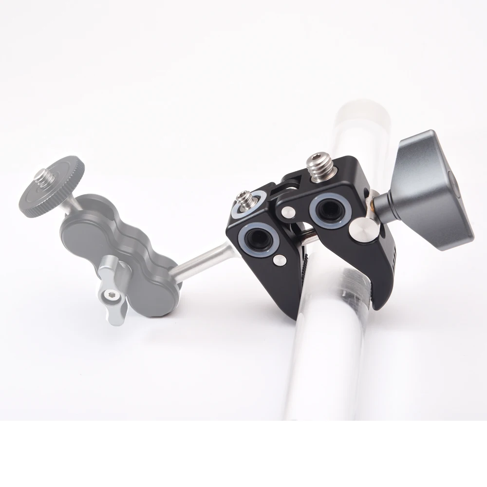 На зажиме плоскогубцы. Особенности: 1. Широкая расширяемая и вместительная: с резьбой 1/4 "и 3/8" и размером до 47 мм2. Угол съемки 360 градусов: шарнирные плоскогубцы обеспечивают большую универсальность для позиционирования доступа.3. Стабильный и безопасный использование опыта с противоскользящей резиновой прокладкой на каждом зажиме плоскогубцев4. Легко использовать: вы можете зафиксировать всю систему, закрепив стержень на зажиме плоскогубцев. Характеристики: Размер: 80*55*20 ммВес нетто: 127 гМаксимальная полезная нагрузка: 2 кг Посылка: 1 * шарнирный Адаптер для крепления на руку