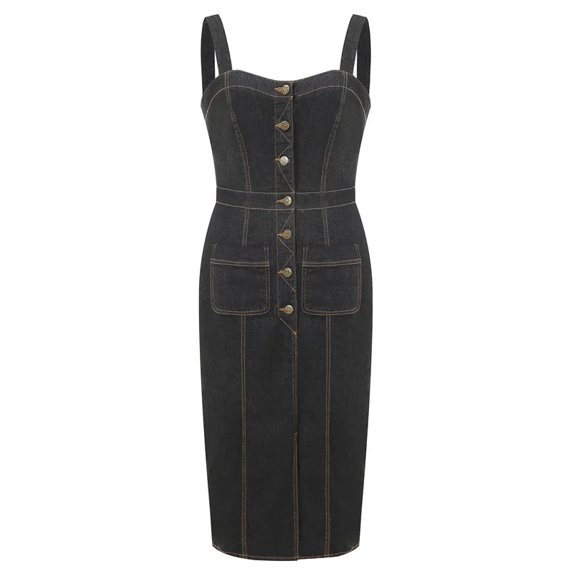 Повседневное джинсовое платье, Vestido, миди, летние наряды, женский сарафан без рукавов, ремень, пуговица, карман, халат, Femme размера плюс, женские платья