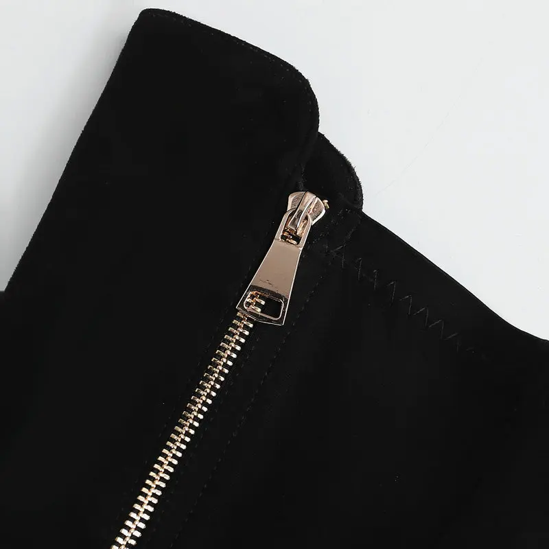 Женская Натуральная кожа спереди на молнии сапоги до колена плоской подошве