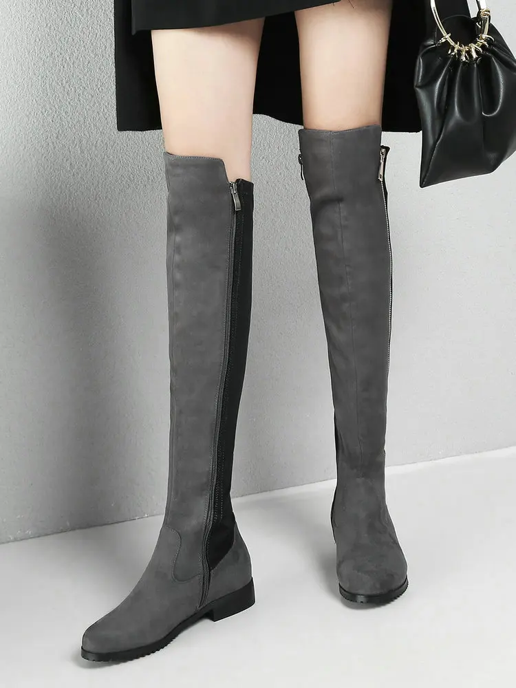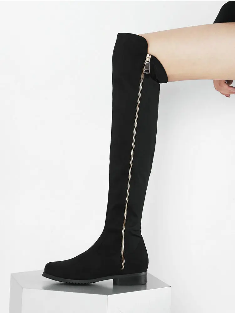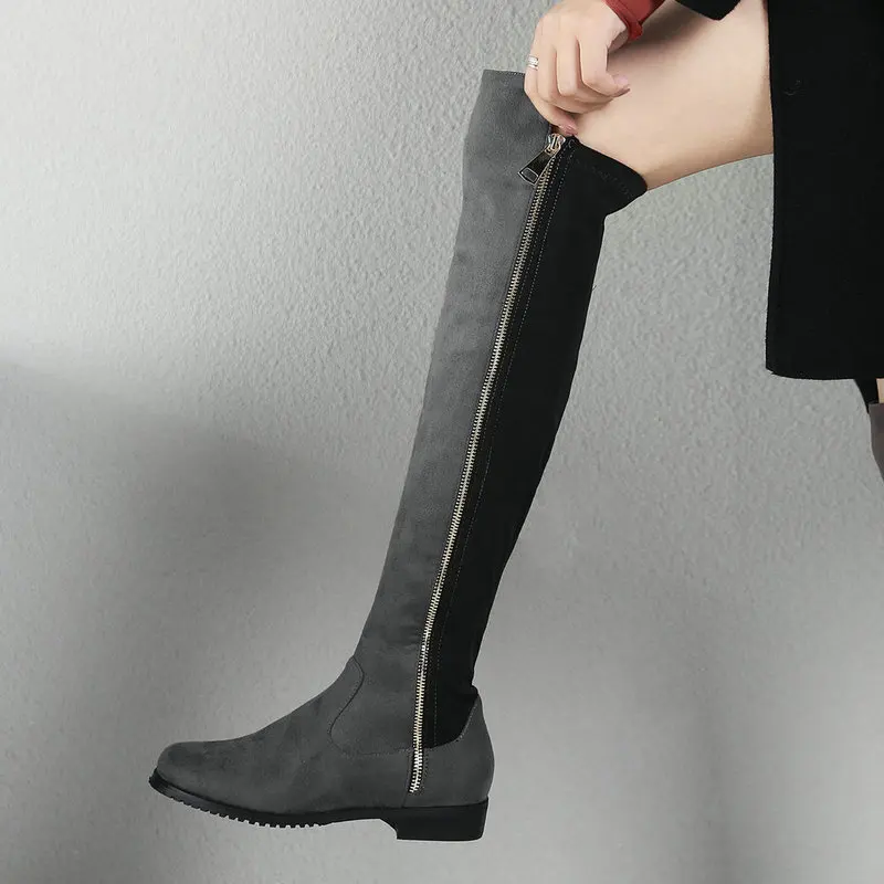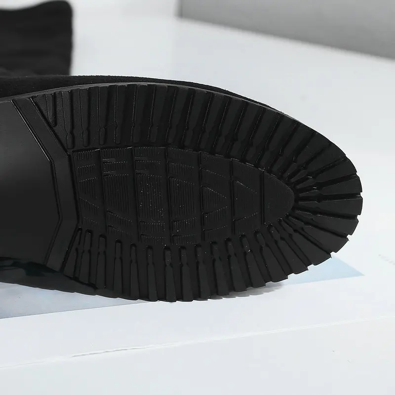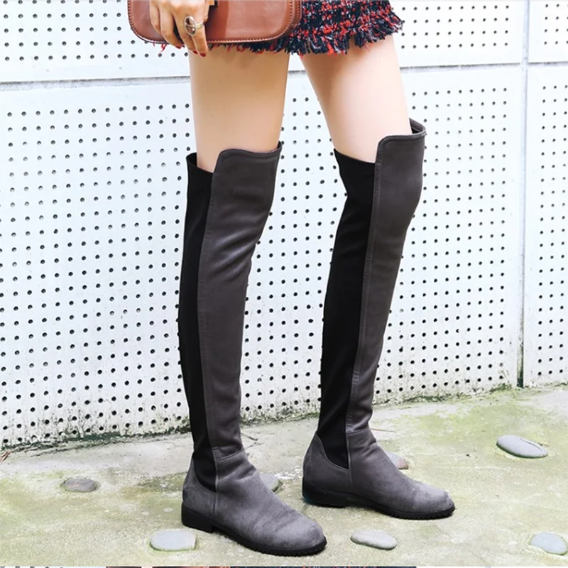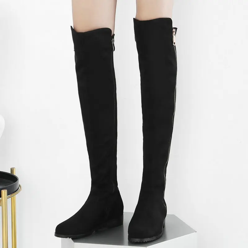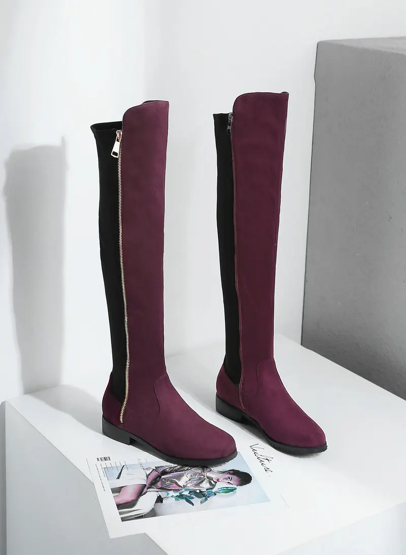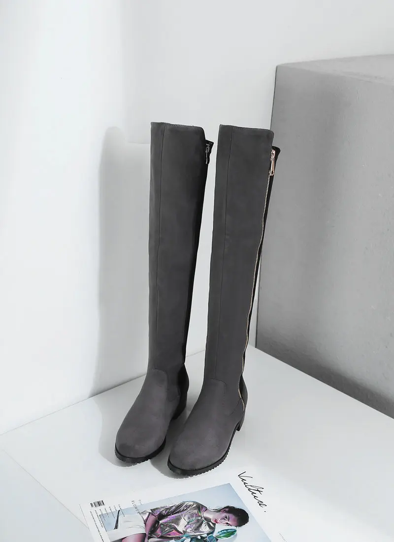 Сапоги выше колена на низком каблуке; Женские модные эластичные сапоги из искусственного флока