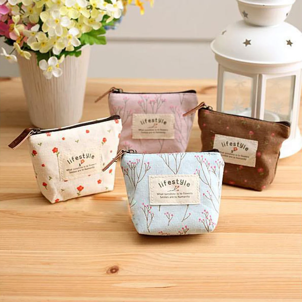 Новинка 2018, мини цветочные холщовые чехлы для монет, сумки для ключей, кошелек для замены карт, кошельки на молнии