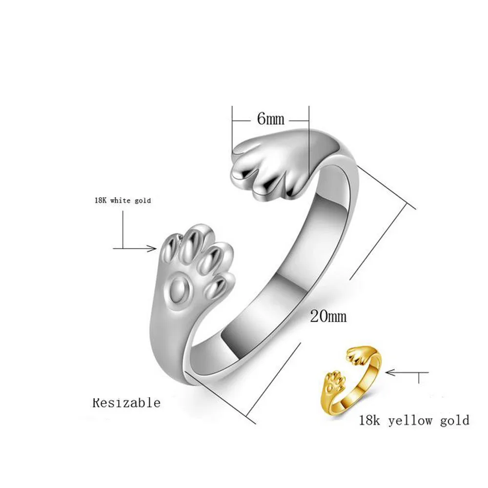 Милое женское кольцо с кошачьей лапой, посеребренное кольцо на палец, ювелирное изделие в виде животного, подарок
