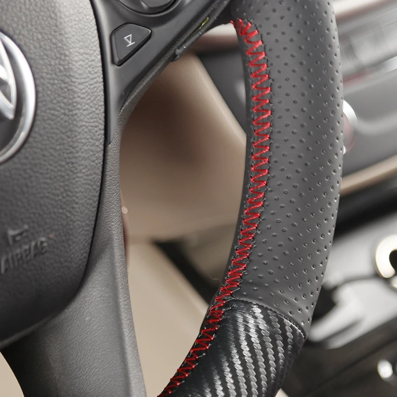 GNUPME искусственной кожи рука сшитый черный чехол рулевого колеса автомобиля для