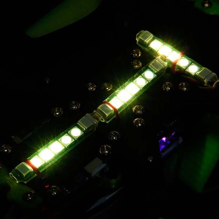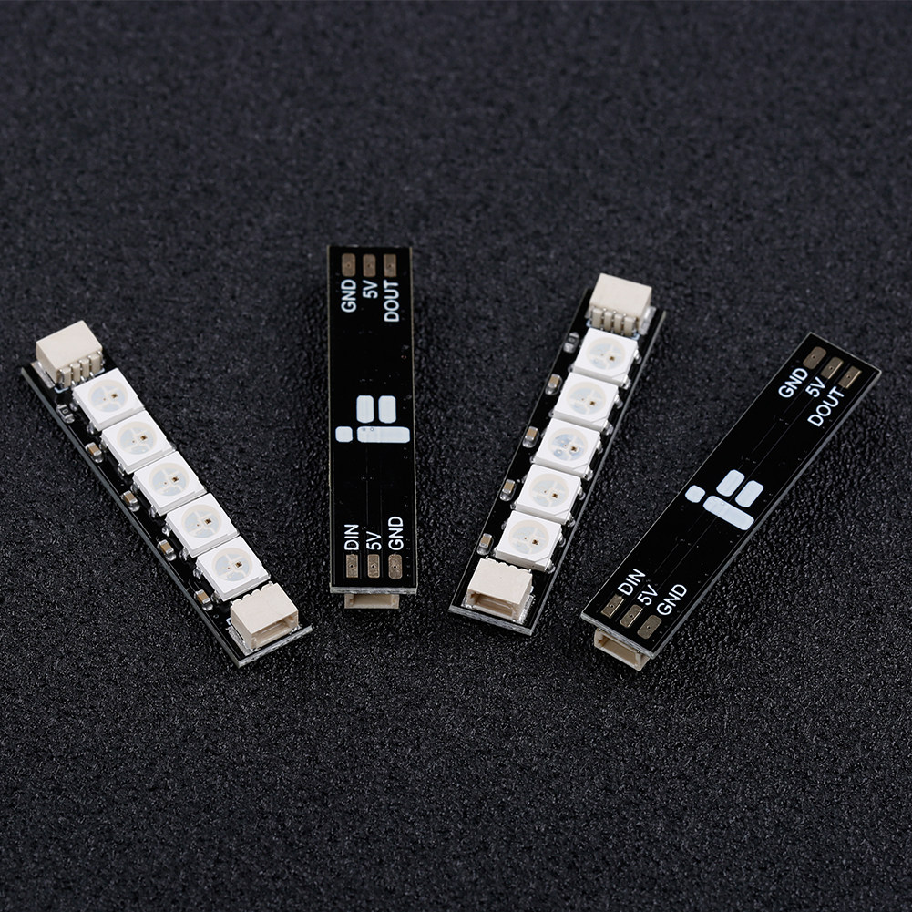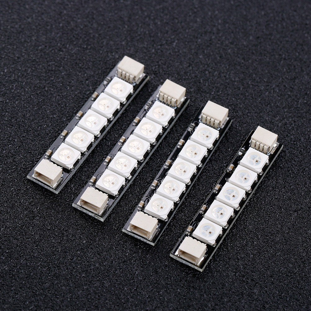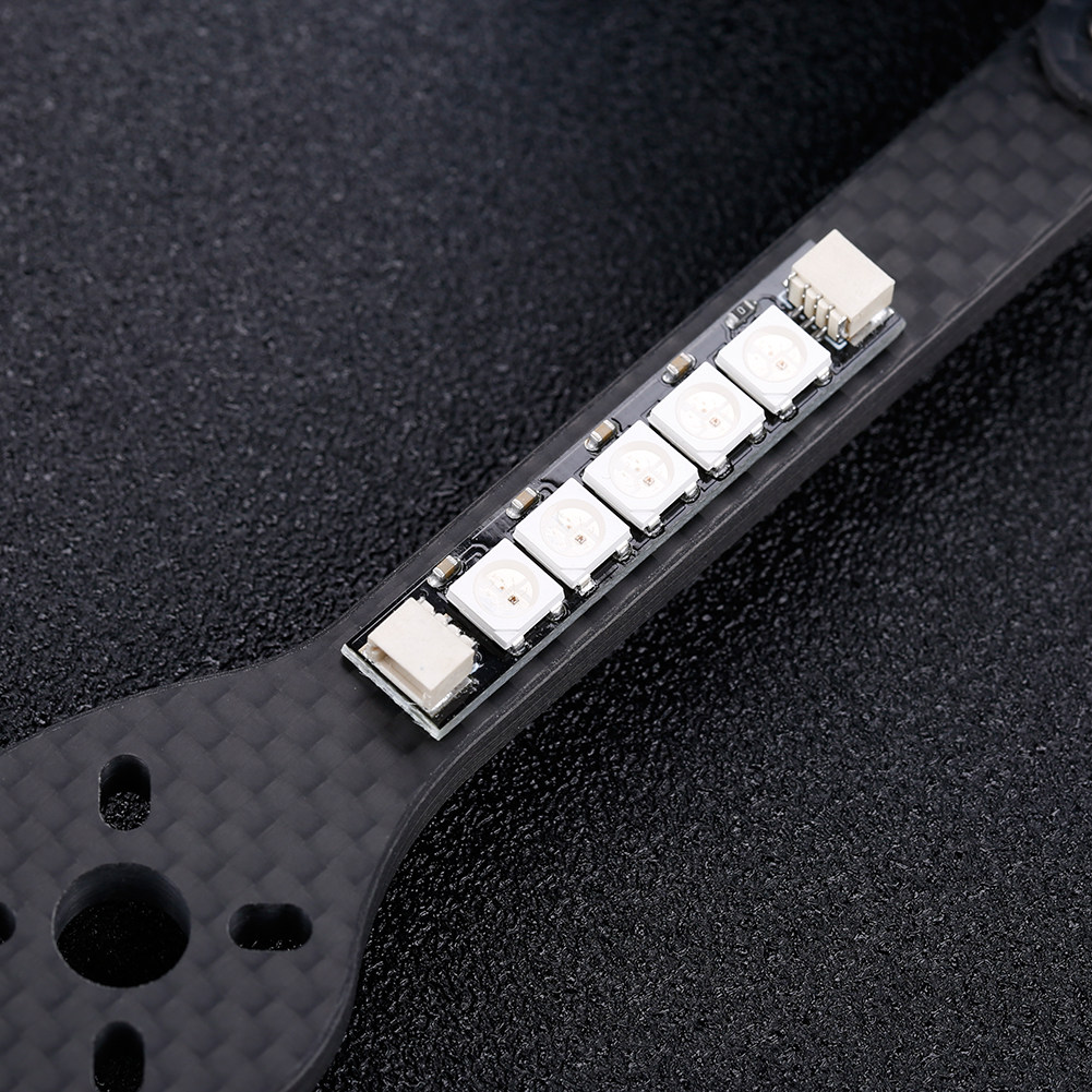 Светодиодный светильник имеет 5 супер ярких RBG светодиодный s, который может быть instal светодиодный, как RGB светодиодный задний светильник, руки, илиДругие Betaflight светодиодный адресуемые доски.Для работы светодиодам необходимо 5 В, Заземление и источник сигнала.