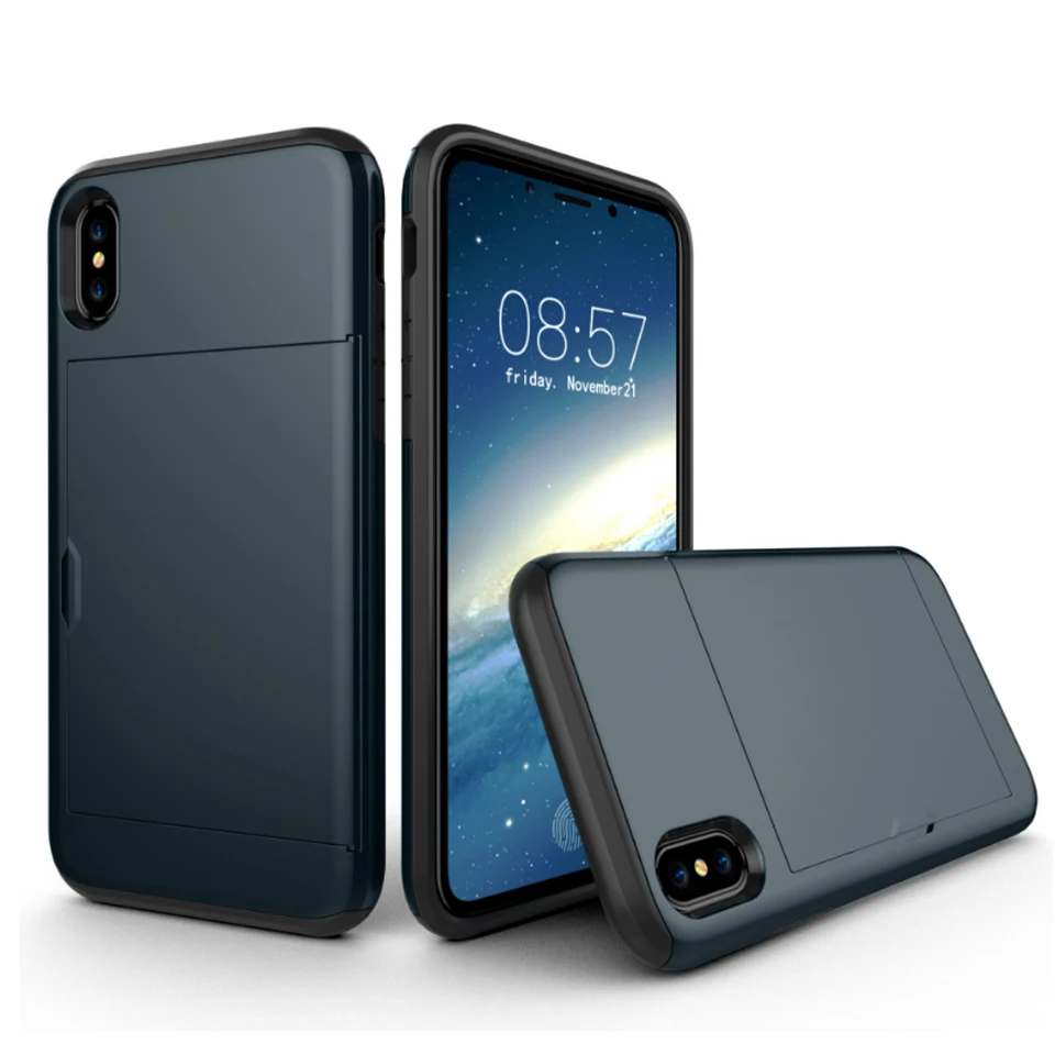 Шок Зондского слайд слот для карты держатель чехол телефона iPhone X Силиконовый