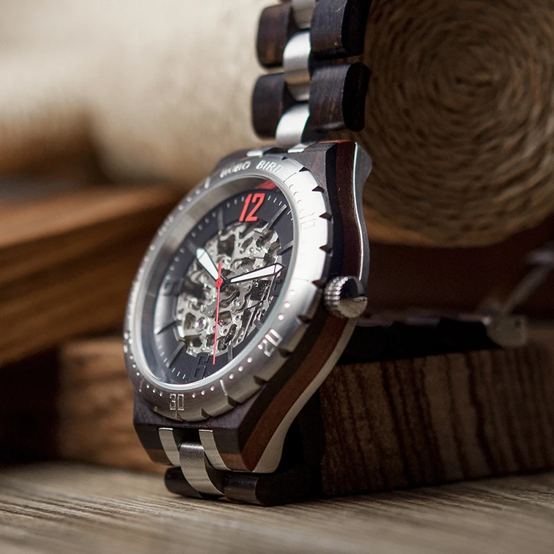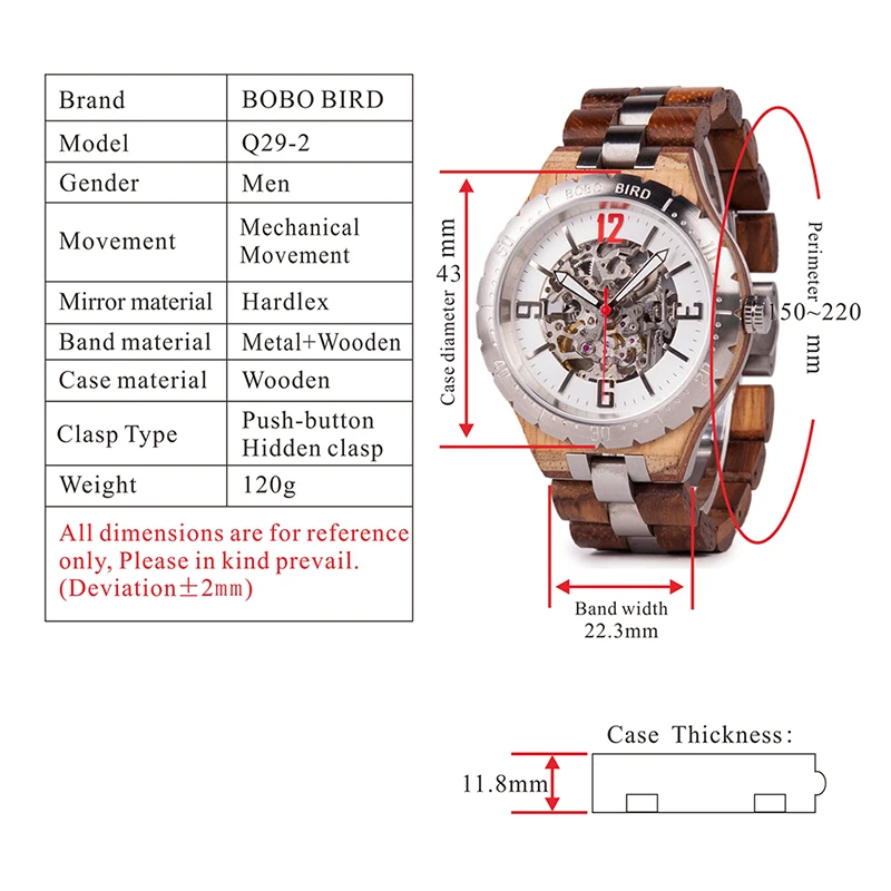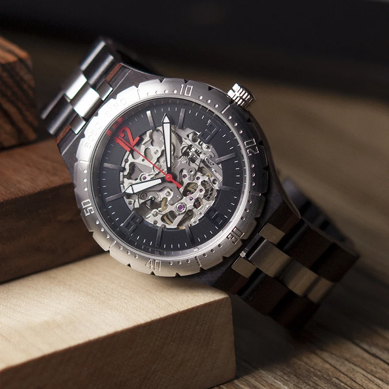 Автоматические механические часы, мужские деревянные наручные часы, мужские forsining Материал: дерево + нержавеющая сталь Размер диаметра: 43 мм Ширина ремешка: 22,3 мм Обхват: 220 мм Вес: 120 г Механизм: механическое движение Пряжка: скрытая застежка с эффектом пуш-ап