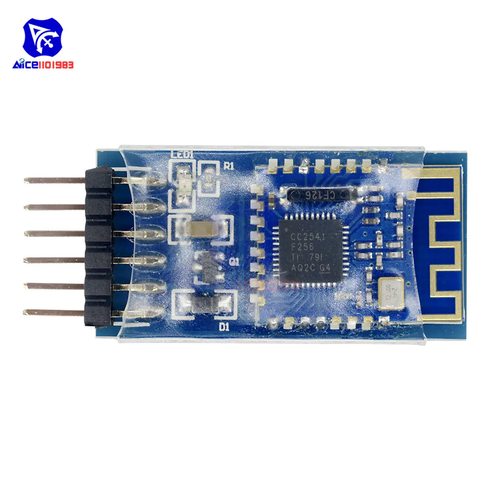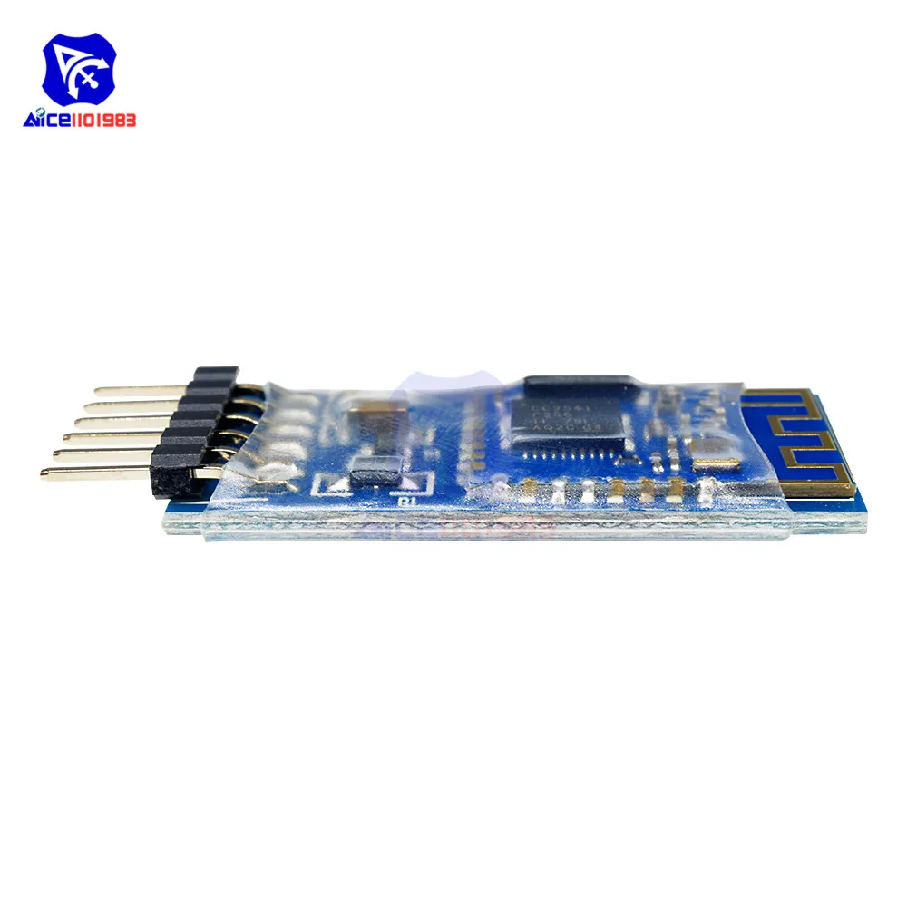 JDY-08 Transparent module is based on the Bluetooth 4.0 protocol standard, the working frequency band is 2.4GHZ, the modulation mode is GFSK, the maximum transmission power is 0db, the maximum transmission distance is 80 meters, adopt the TICC2541 chip design, support the user through the AT command to modify the device name , Service UUID, transmit power, matching password and other instructions, convenient and quick to use flexible. Feature: 1: WeChat transmission (support AirSync protocol, used in WeChat H5 or factory server communications, including long packet data analysis transceiver) 2: APP transparent (support Android, IOS data transmission) 3: iBeacon mode (support WeChat shake agreement with Apple iBeacon protocol) 4: sensor mode (temperature, humidity and many other sensor data acquisition applications) 5: host transparent mode (between the application of data transmission between the module, the host and the slave communication) 6: host observer mode (application sensor, indoor positioning) 7: PWM mode (used in motor speed, LED light brightness adjustment) 8: IO mode (applied to mobile phone control relay or LED off) 9: indoor room application (application of iBeacon data to achieve the scope of positioning) Parameter: 1: Communication rate 3K Bytes / sec 2: APP through the serial port support 1024Bytes write 3: effective communication distance of 15 to 30 meters 4: Supports PWRC pin control sleep 5: support IO port control disconnect Two pin function description DISC pin: used to actively disconnect the Bluetooth connection (the default high, low disconnected) PWRC pin: used to wake up sleep (the default is in sleep state), the use of this pin ground can be issued AT command VCC pin: for the module's power supply pin, the supply voltage range between 3.6V and 6V GND pin: power ground TXD pin: serial output pin RXD pin: Serial input pin This figure shows the wiring when the transmission, the current DIS pin is not connected, if the user is using the MCU and JDY-08 module connection, the DIS pin can be connected to the MCU IO port. AT command JDY-08 for the multi-function module, AT command specific Please carefully read JDY-08 module standard manual Package Included: 1 x JDY-08 Bluetooth 4.0BLE Low Power CC2541 Support Airsync iBeacon Module