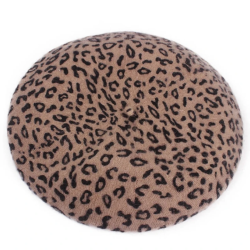 Модные женские туфли берет кепки осень зима шерсть Leopard Печать 5 цветов шапка бини Винтаж повседневное вводной художник теплый элегантный