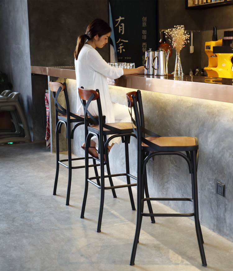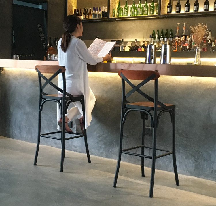 Европейский и американский стиль барный стул кованый железный барный стул из массива дерева простой современный высокий барный стул переднее кресло