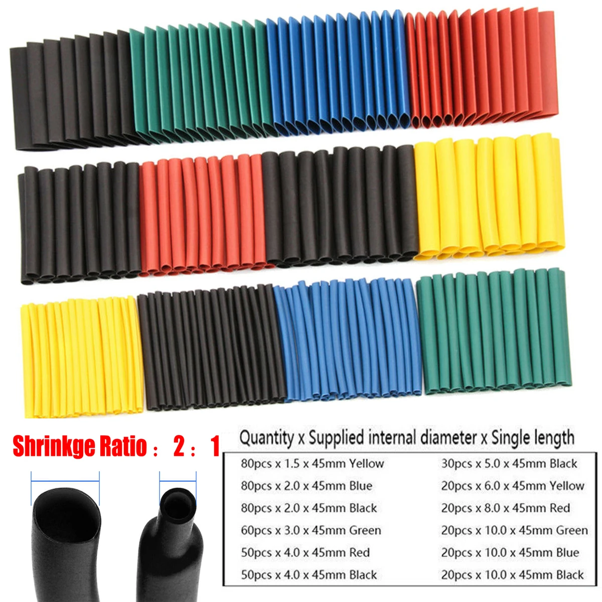 Включает в себя 328 шт термоусадочных труб, подходит для различных потребностей.