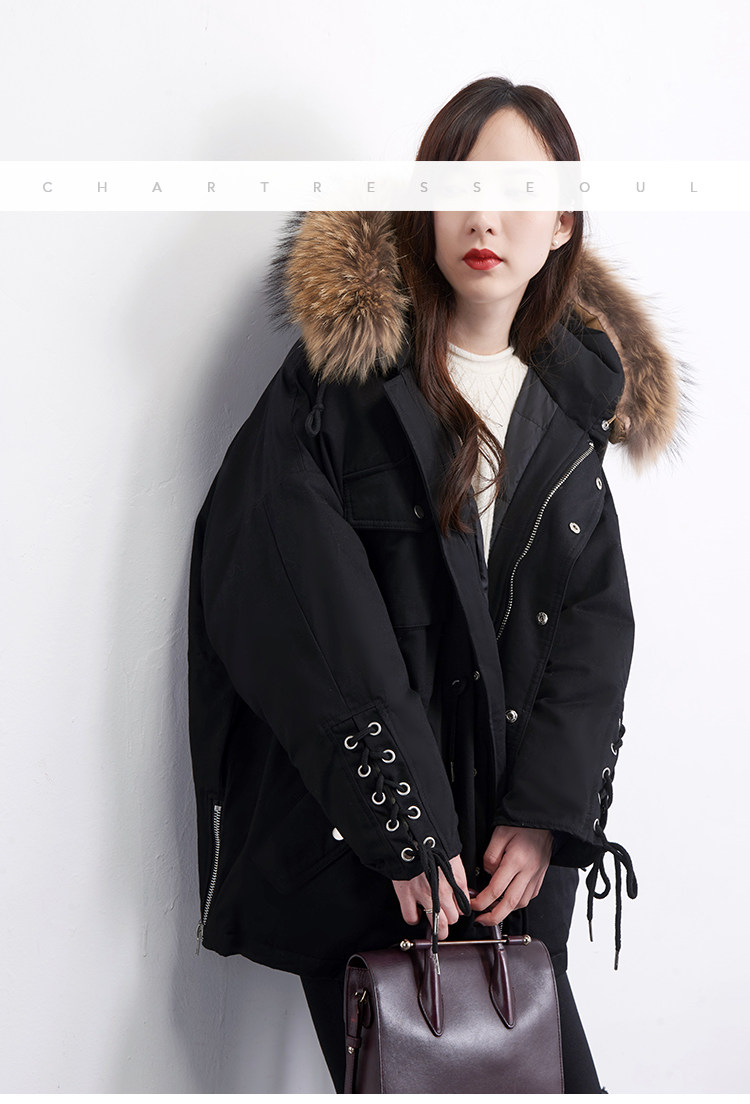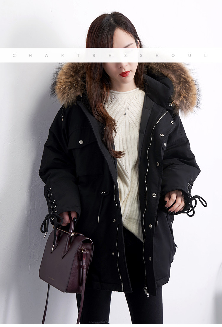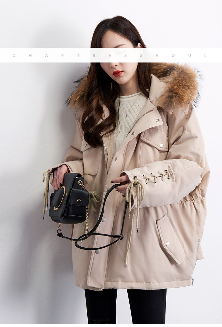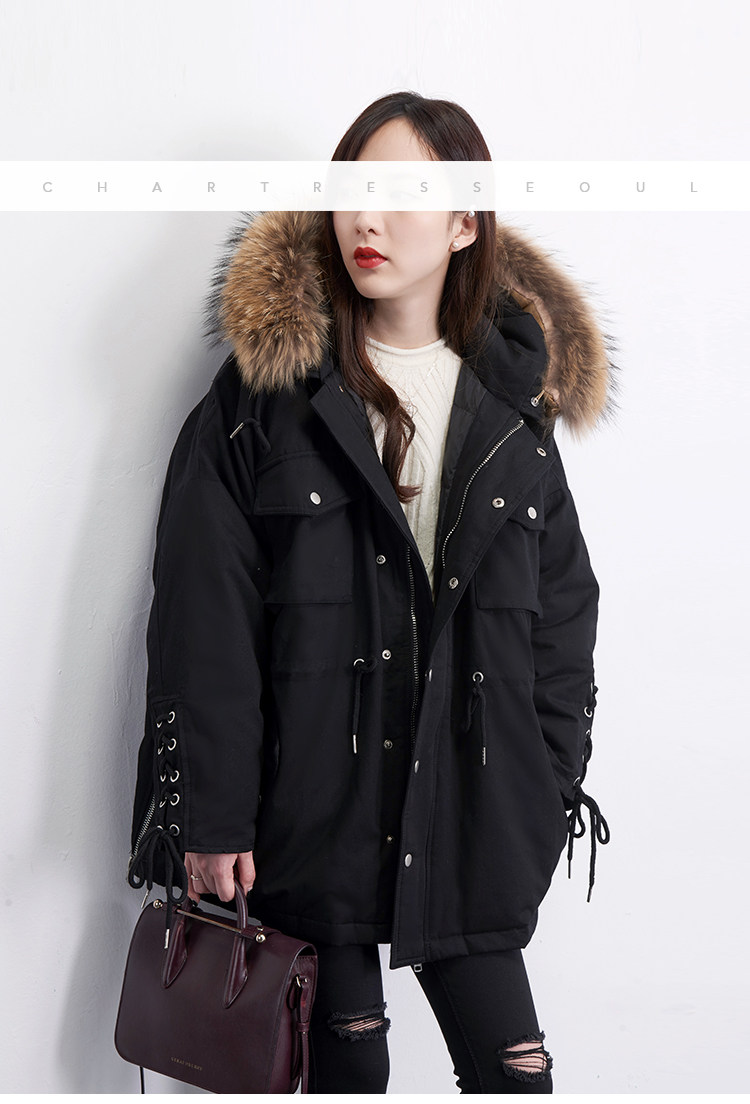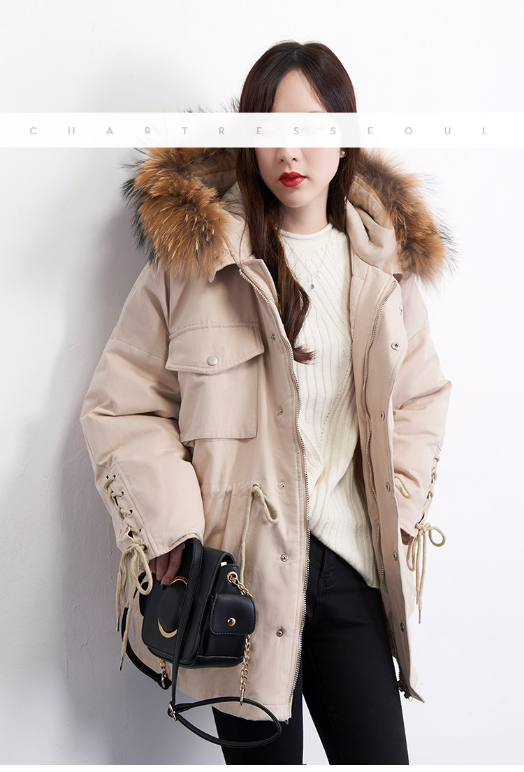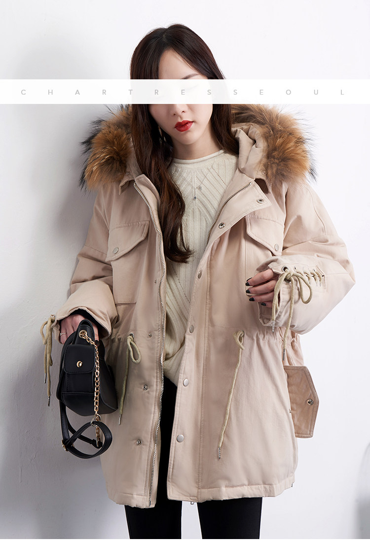 Материал:Воротник из натурального меха енота+Подкладка из белого утиного пуха