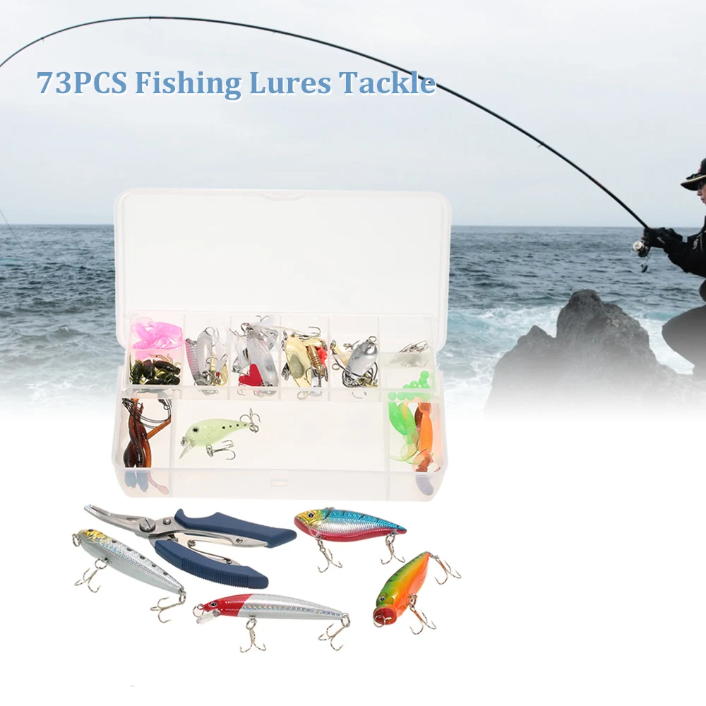 Включает в себя приманки из твердого пластика, мягкие силиконовые приманки, блесны, рыболовные плоскогубцы, направляющие кольца, рыболовные крючки и другие аксессуары, в общей сложности 100 штук.