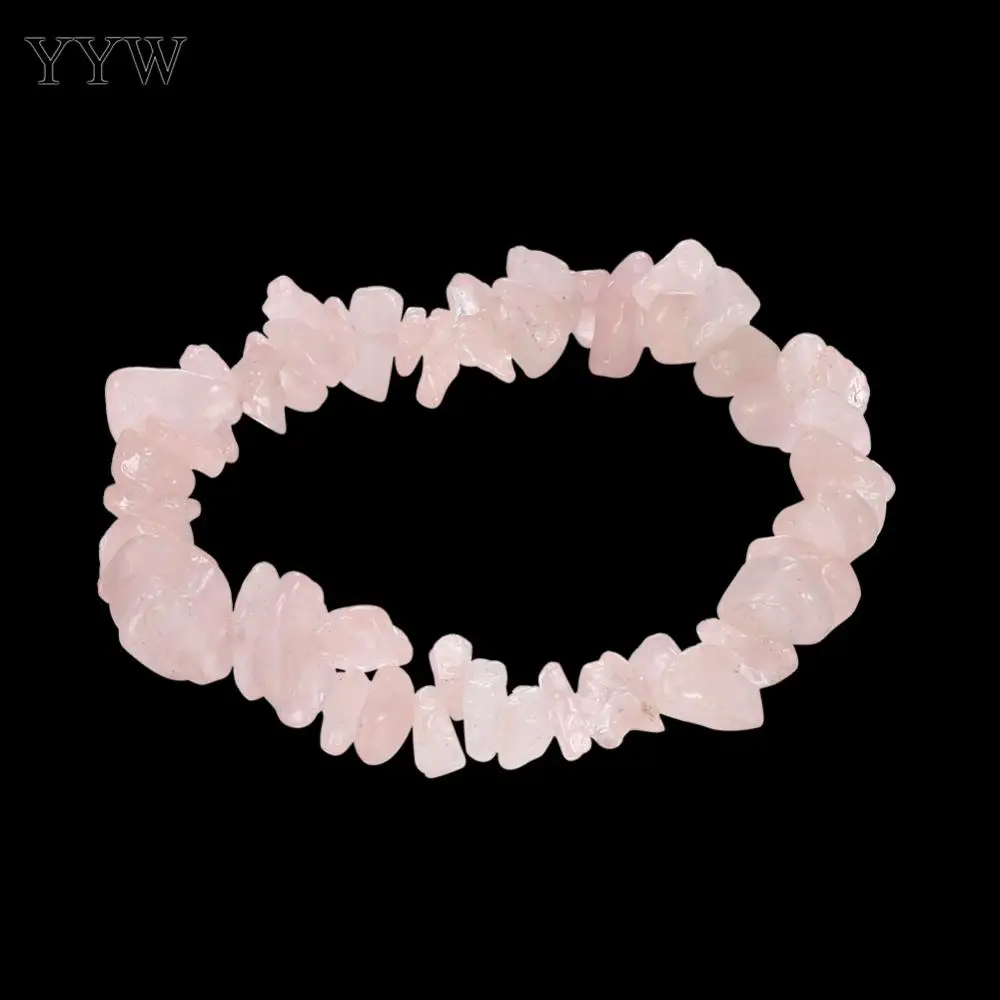 2018 новые женские ювелирные изделия Браслет Из Натурального Розового Кварца имеются сколы от камней самородки бусины тонкие эластичные розовые браслеты с подвесками, Продан через приблизительно 6,2 дюймовый Strand
