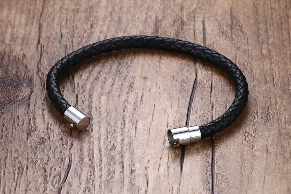 Плетеный кожаный браслет черная 8 мм серебряная трубка Застежка: Магнитная застежка из нержавеющей стали Материал: натуральная кожа 100% ручной работы Качественный, 8 мм плетеный шнур Стильная застежка из настоящей нержавеющей стали Магнитная застежка, с дополнительной надежной фиксацией Плетеный кожаный браслет идеально, стилистически, в сочетании с браслетами из бисера