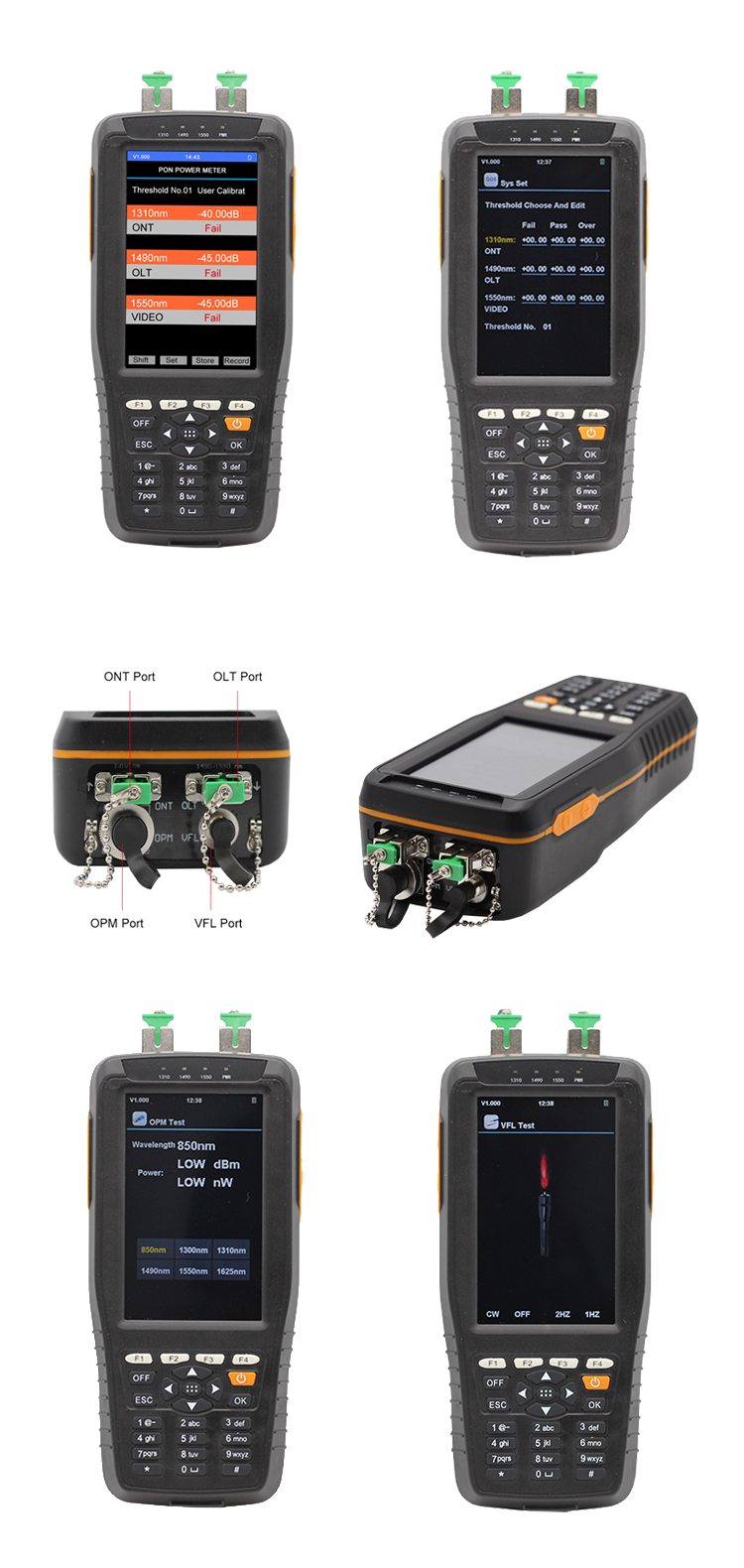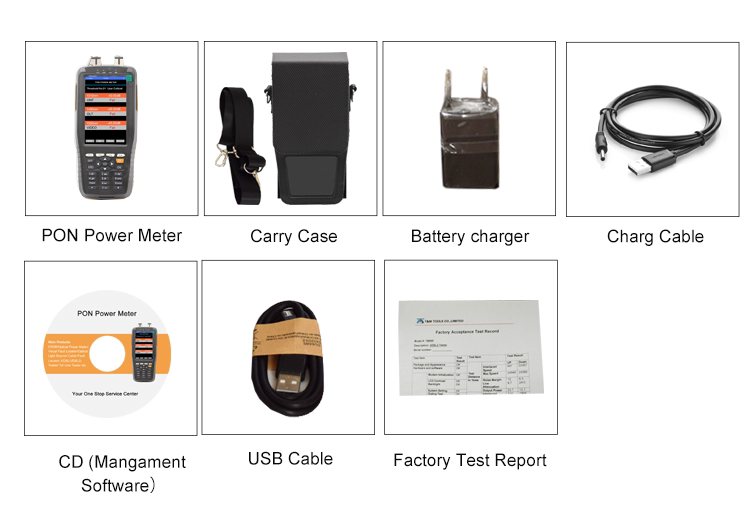 TM70B PON измеритель мощности (pon test instrument) специально разработан для строительства и обслуживания сети PON, которые могут быть соединены между OLT и ONT. Голос, данные, видеосигнал (1310/1490/1550) онлайн можно измерить синхронно и оптическое значение мощности (1310/1490/1550) может быть отображено с помощью этого счетчика. Это полезный инструмент для тестирования площадки для инженеров PON network и операторов обслуживания.