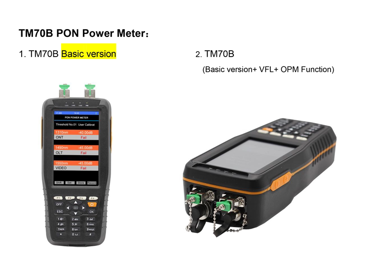 | TM70B-OV1 | PON + 1MW VFL + оптический измеритель мощности (850,1300,1310,1490,1550,1625nm) |