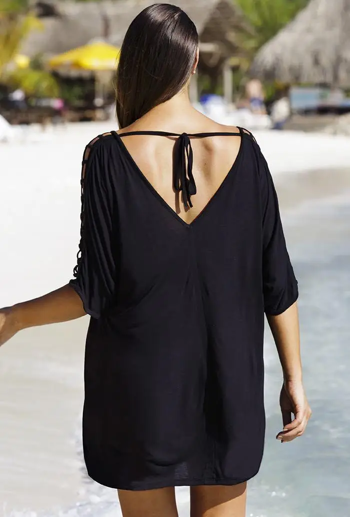 Женское длинное кружевное платье VOLALO темно синее на тонких бретельках с открытой