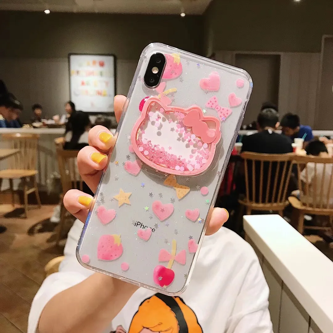 Чехлы для телефонов с жидким сердцем, блестящим смайликом, облаками для iPhone 6, 6, s, 7, 8 Plus, X, XS Max, мороженным, мягким ТПУ динамическим бисером, задняя крышка