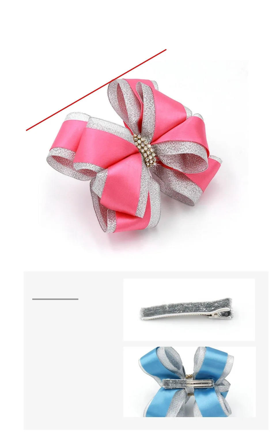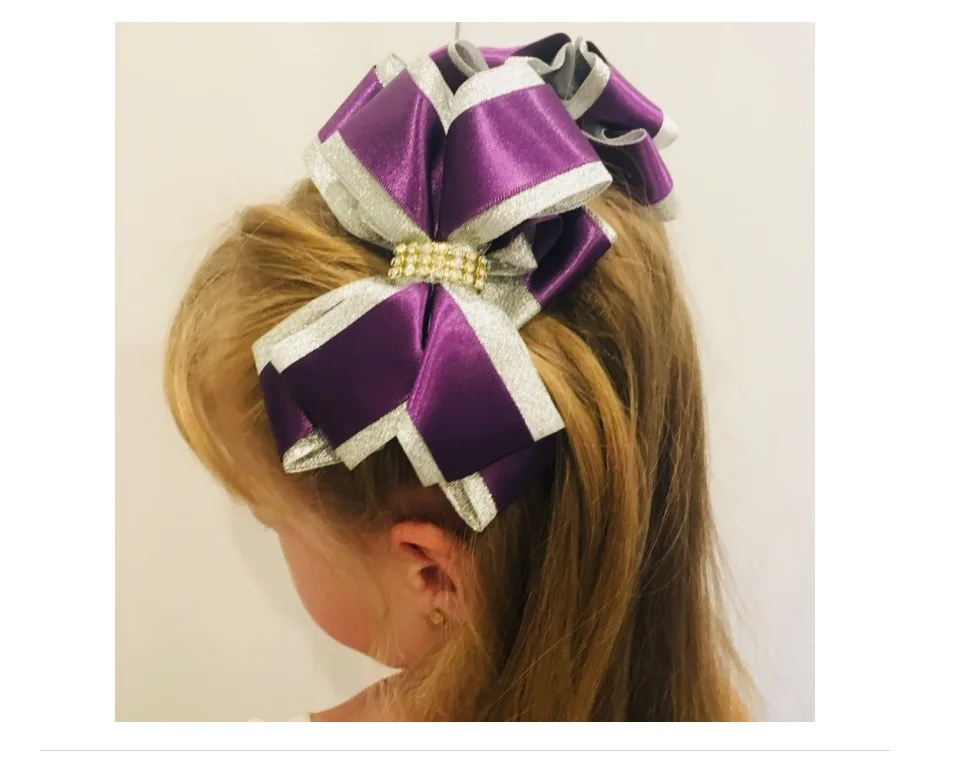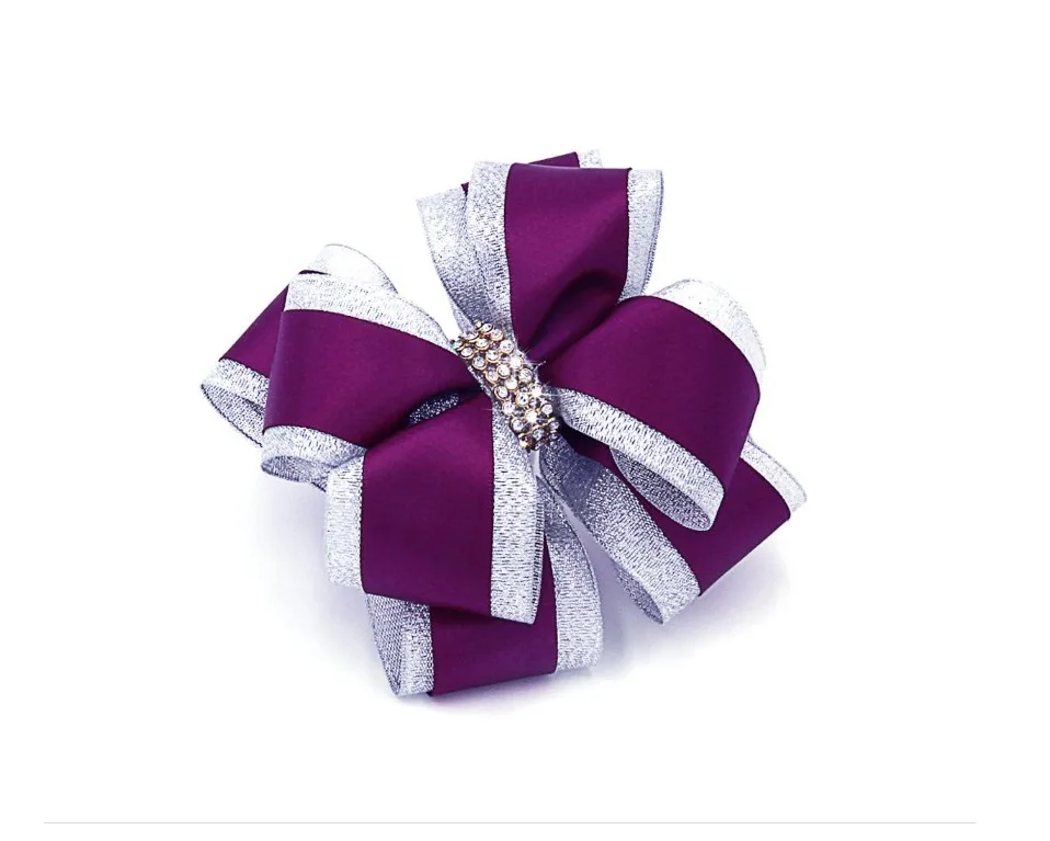 FQIQI 4,5 Дюймов Большой Ручной работы Ленты Серебряный Край Волос Лук Клипы