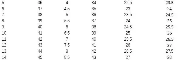Размер США, европейский размер, размер Великобритании, размер бюстгальтера, длина стопы, внутренняя длина