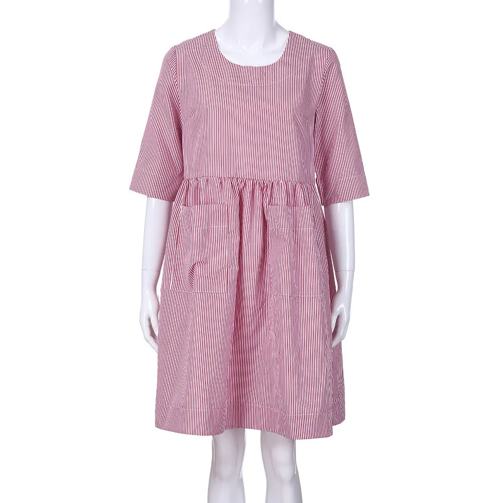 Женское повседневное Полосатое свободное платье до колена с карманами и эластичной резинкой на талии