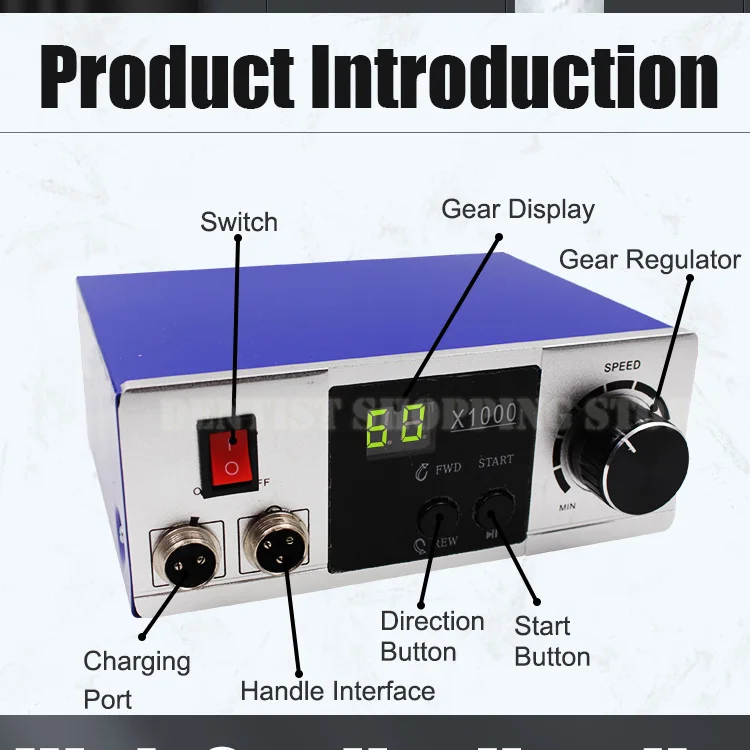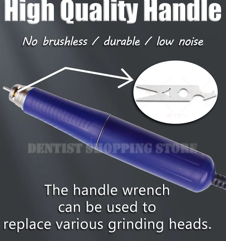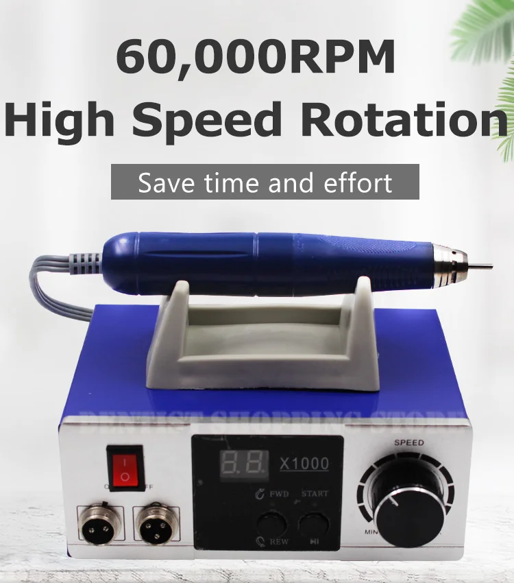 Характеристика:1. Высококачественный электрический стоматологический наконечник для лаборатории микромотор,2. 0 ~ 6,0000 об/мин, меньше вибрации стандартный двигатель угольной щетки.3. Отсутствие тепла после долгих часов работы эффективной электрической конструкцией.4. Система неступенчатой скорости.5. Возможность поворота вправо и влево.6. Система включения/выключенияТехнические параметры:1. Размер заусенцев: 2,35 мм2. Скорость диапазон: 0-60000 оборот в минуту3. Размер цанги: 3/32''4. Самый большой крутящий момент: 750gf.cm
