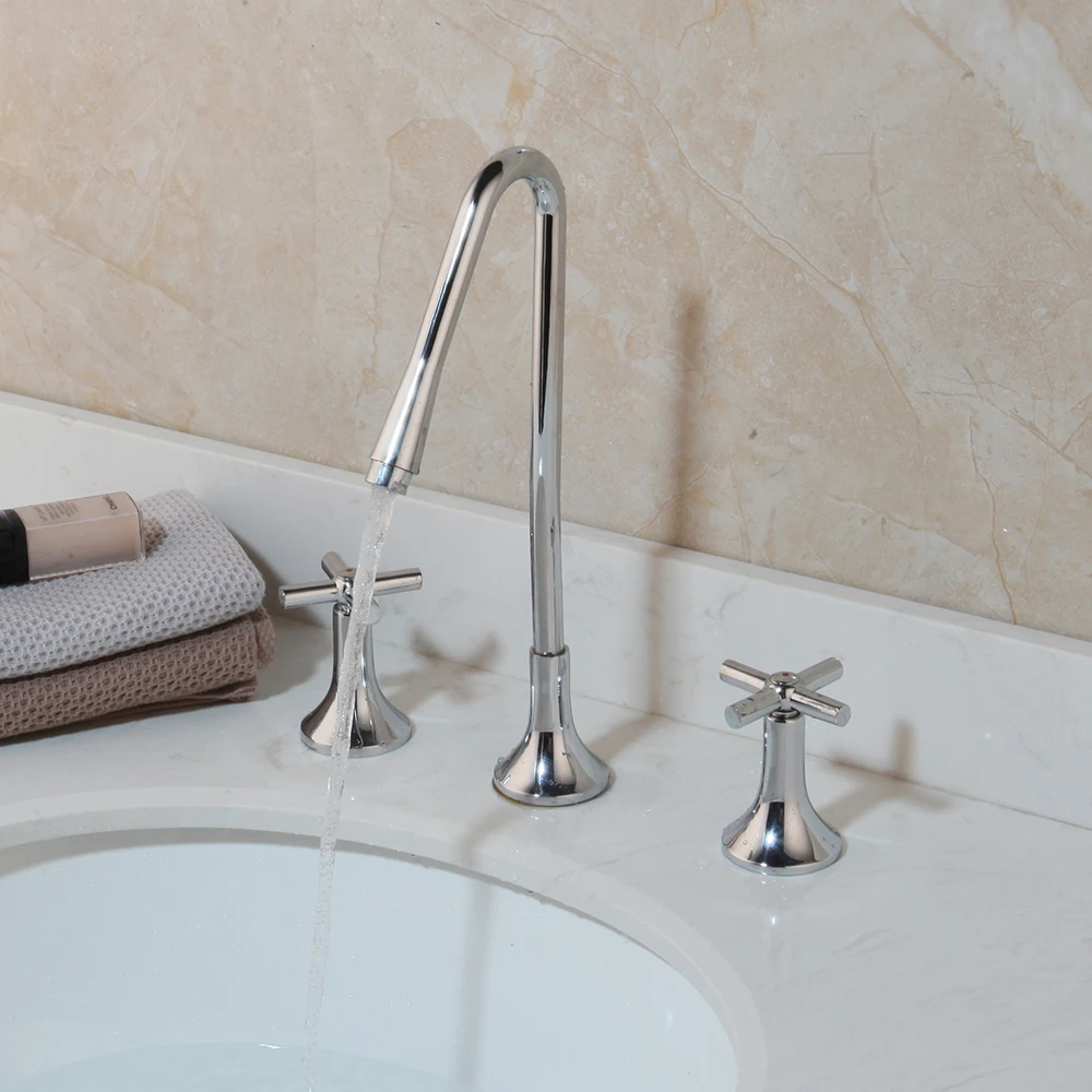 Античный смеситель для раковины в ванную комнату с двойной ручкой латунный