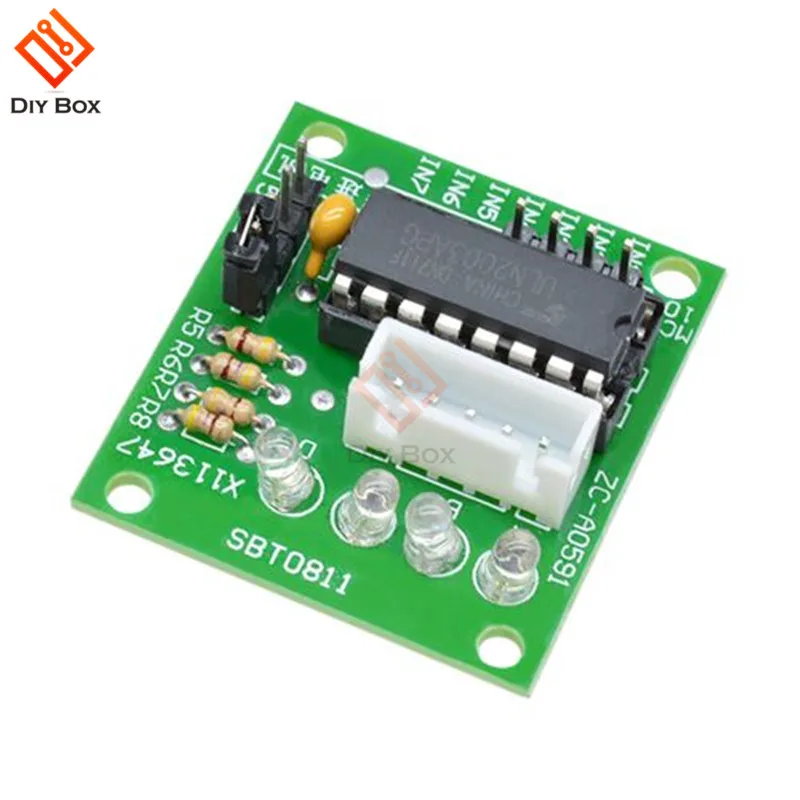 Плата шагового двигателя с ULN2003. Четырехфазный светодиодный модуль A, B, C, D указывает на состояние работы шагового двигателя. Шаговый двигатель со стандартным интерфейсом, когда используется, подключается напрямую. Привод зарядная Модульная плата Размеры: 2,8 см x 2,8 см x 2 см Посылка: Модуль платы шагового двигателя ULN2003 для Arduino, 1 шт.