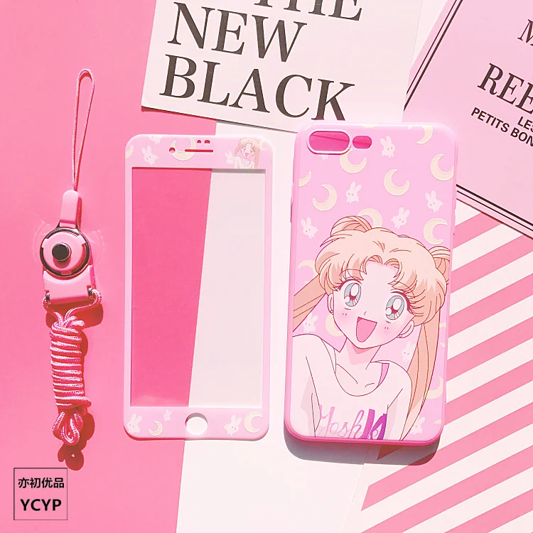 Милый чехол для iphone X Sailor Moon, защитная пленка из закаленного стекла для iphone 7 8 8plus 6 6S plus, розовая Крышка, ремешок, металлическая подарочная коробка