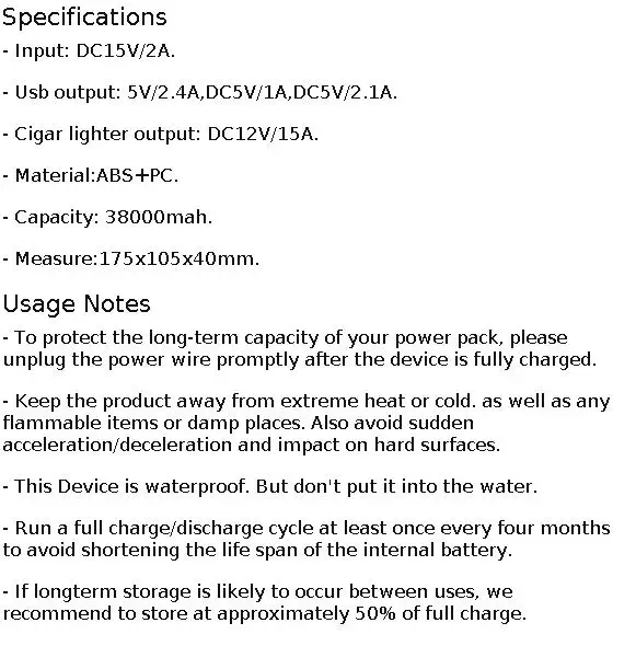 -Чтобы защитить долгосрочную емкость вашего блока питания, пожалуйста, немедленно отключите провод питания после полной зарядки устройства.