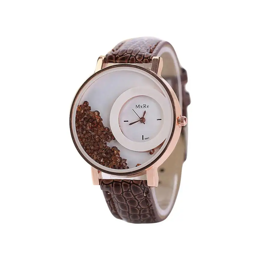 1 шт.Женские кожаные Quicksand стразы, кварцевые наручные часы-браслет