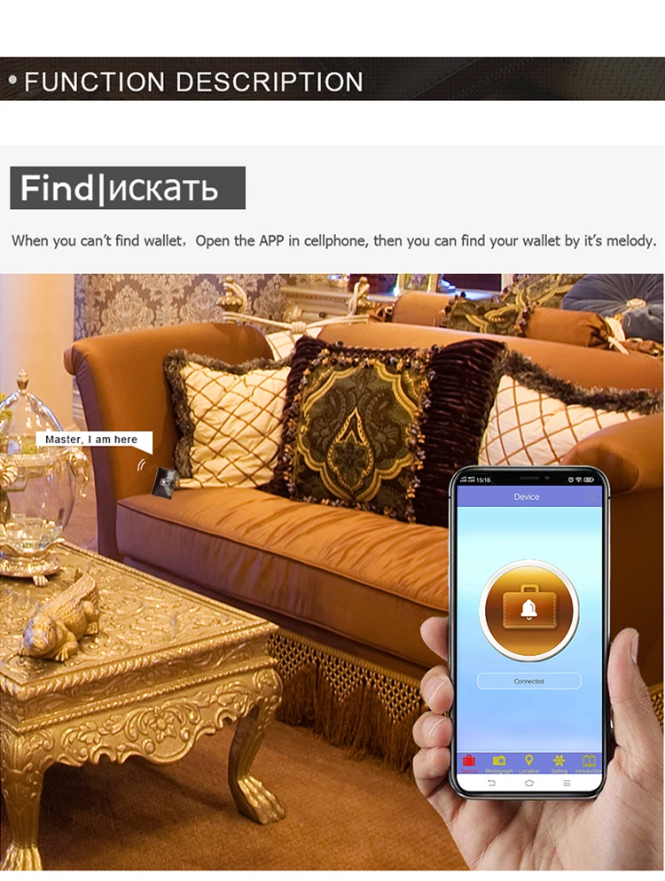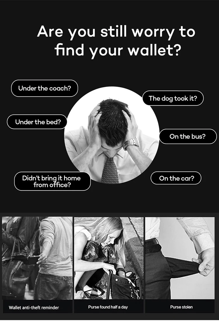 1. Вам нужно различить разницу между умным кошельком и обычным кошельком. 2. Умные кошельки и обычные кошельки изготовлены из той же кожи 3. Смарт-кошелек может быть подключен к мобильный телефон через Bluetooth, и имеет функции противоугонной, анти-потери и позиционирования. 4. Умный кошелек имеет встроенный литиевый аккумулятор, который можно заряжать с помощью usb-кабеля