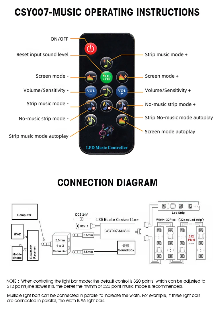 JERCIO led CSY007-MUSIC модное украшение в WS2812b/SK6812/XT1511 256 серая Светодиодная лента магический светодиодный контроллер