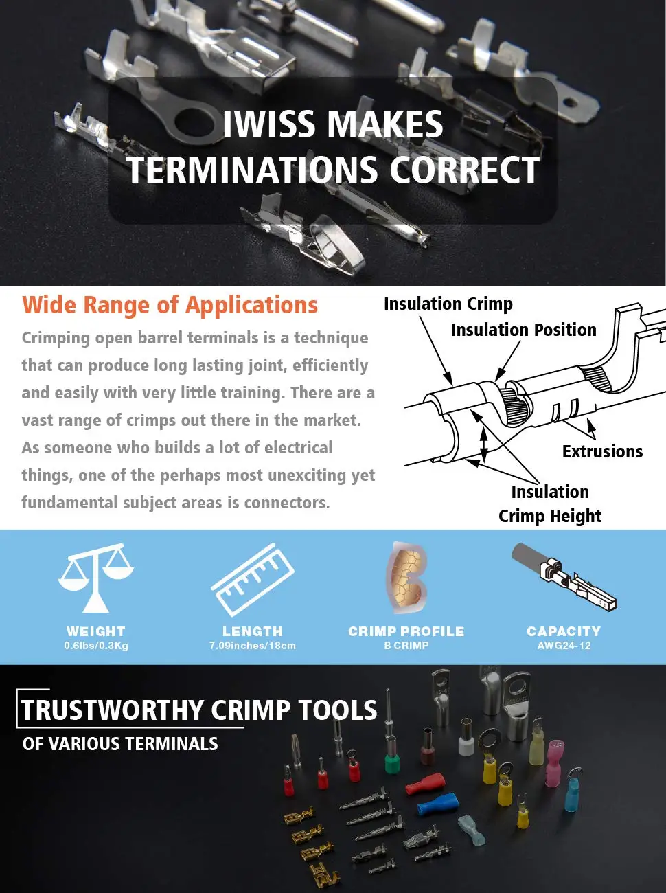 IWISS открытый баррель обжимные инструменты работает на Molex, Tyco, JST терминалы и разъемы