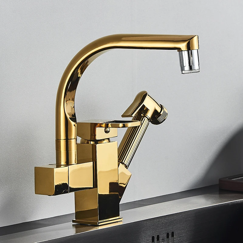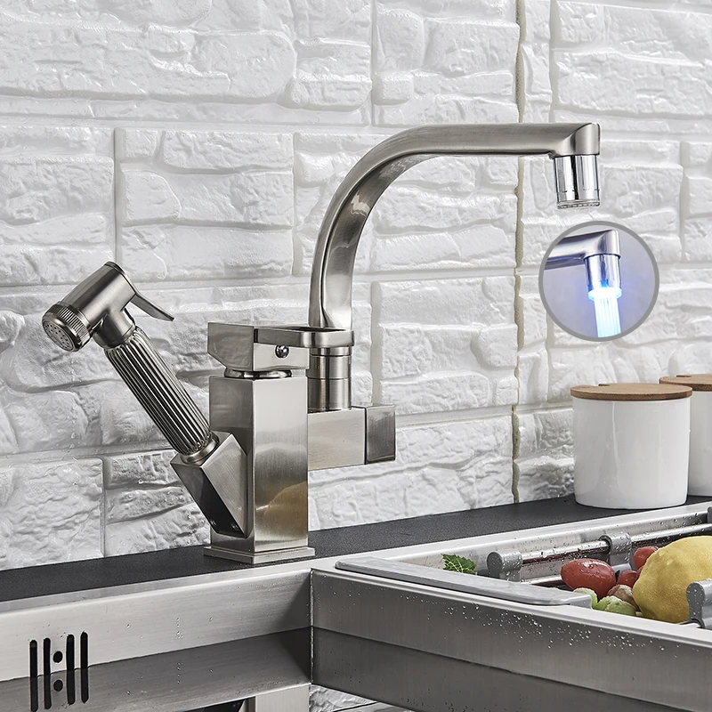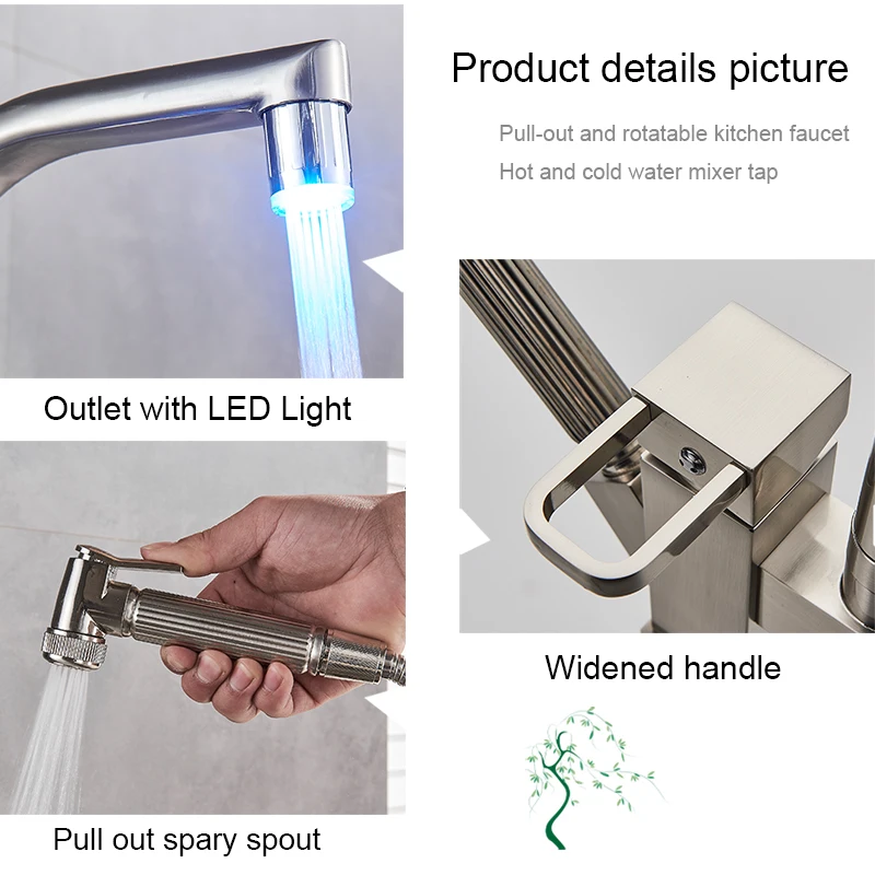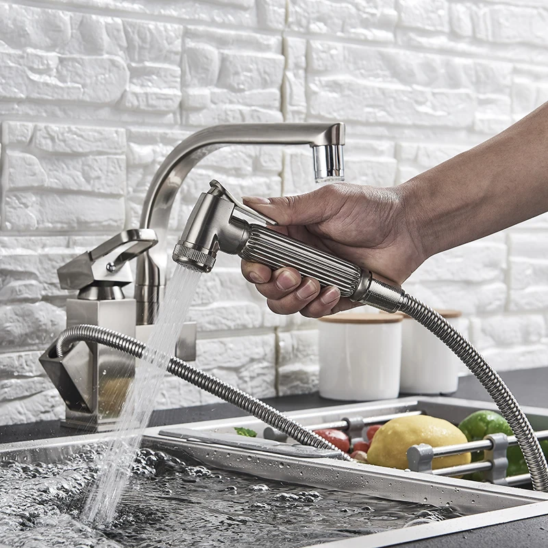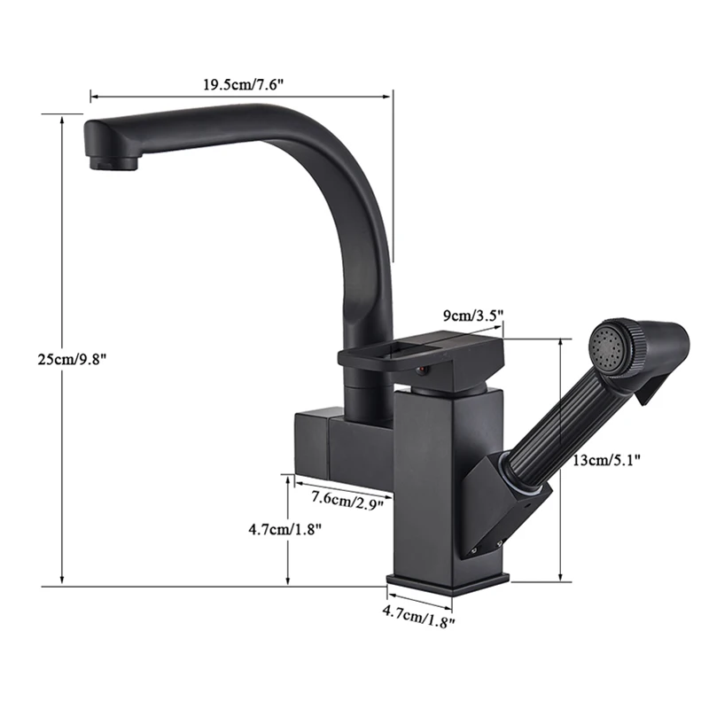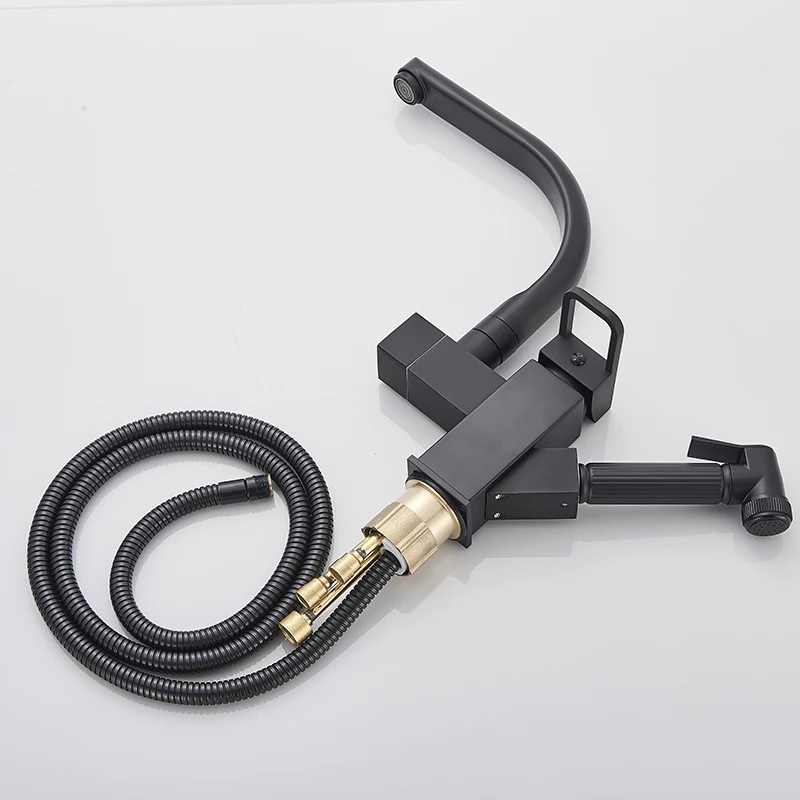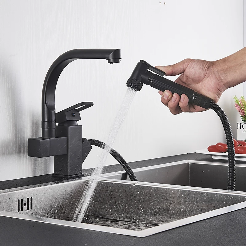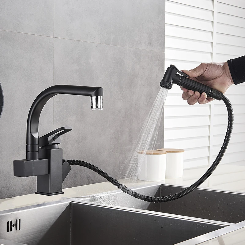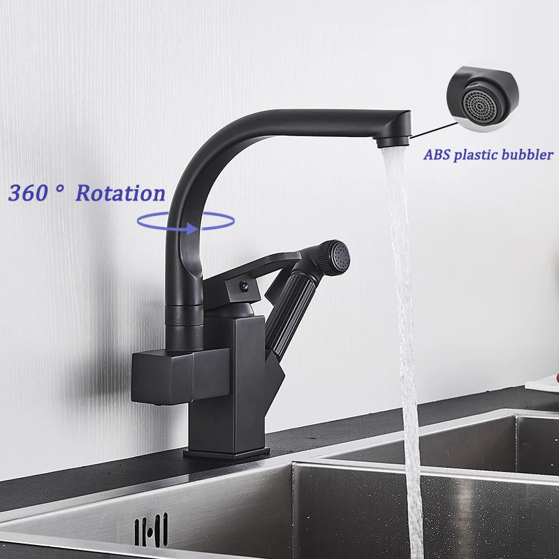 Модный матовый черный смеситель для кухонной раковины с вытягивающимся распылителем, кран с поворотом на 360 градусов, смеситель для горячей и холодной воды, один кран Handel